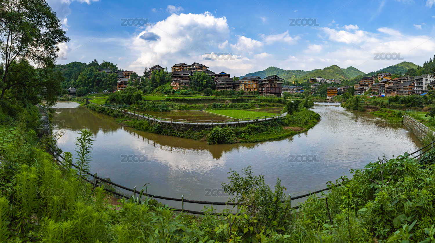 貴州省從江縣高增鄉(xiāng)付中村,林溪河沿岸風(fēng)光