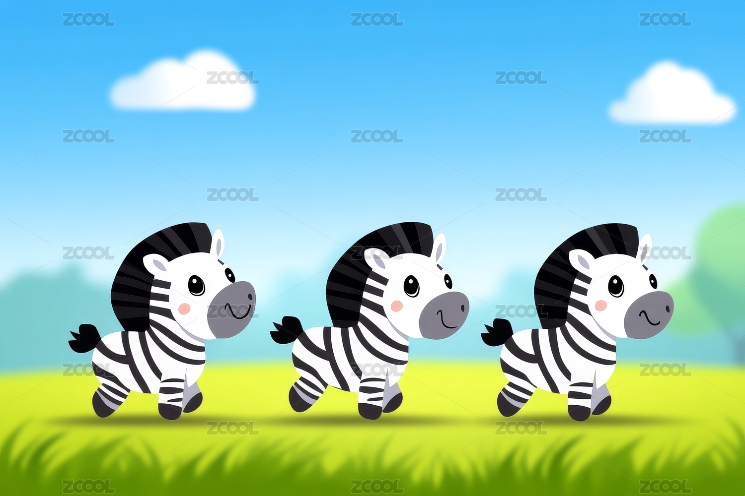 三只斑馬奔跑圖