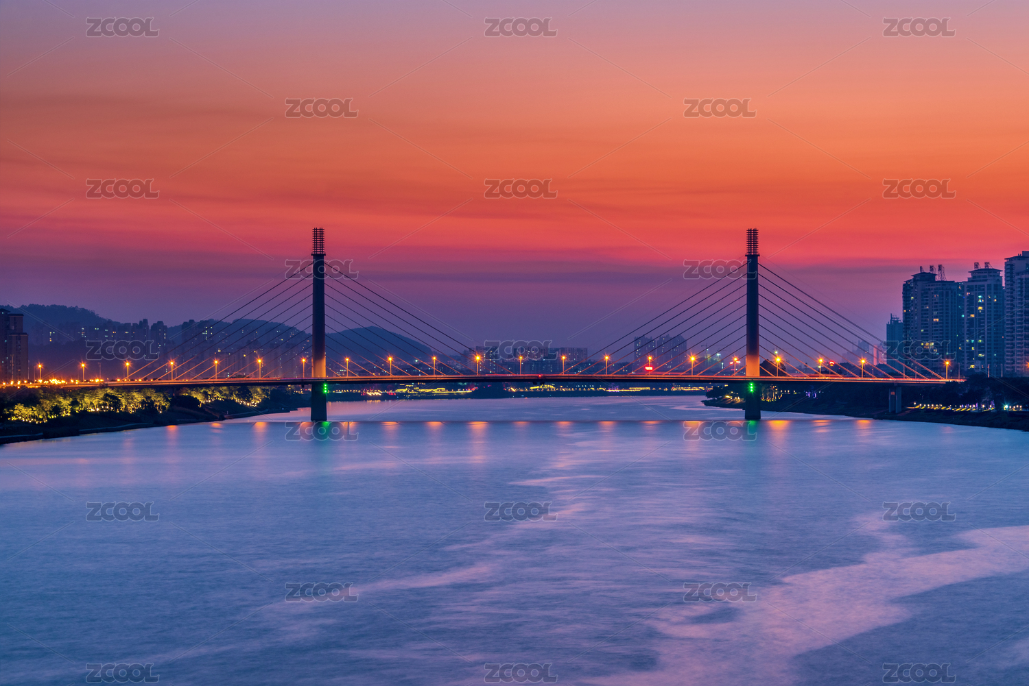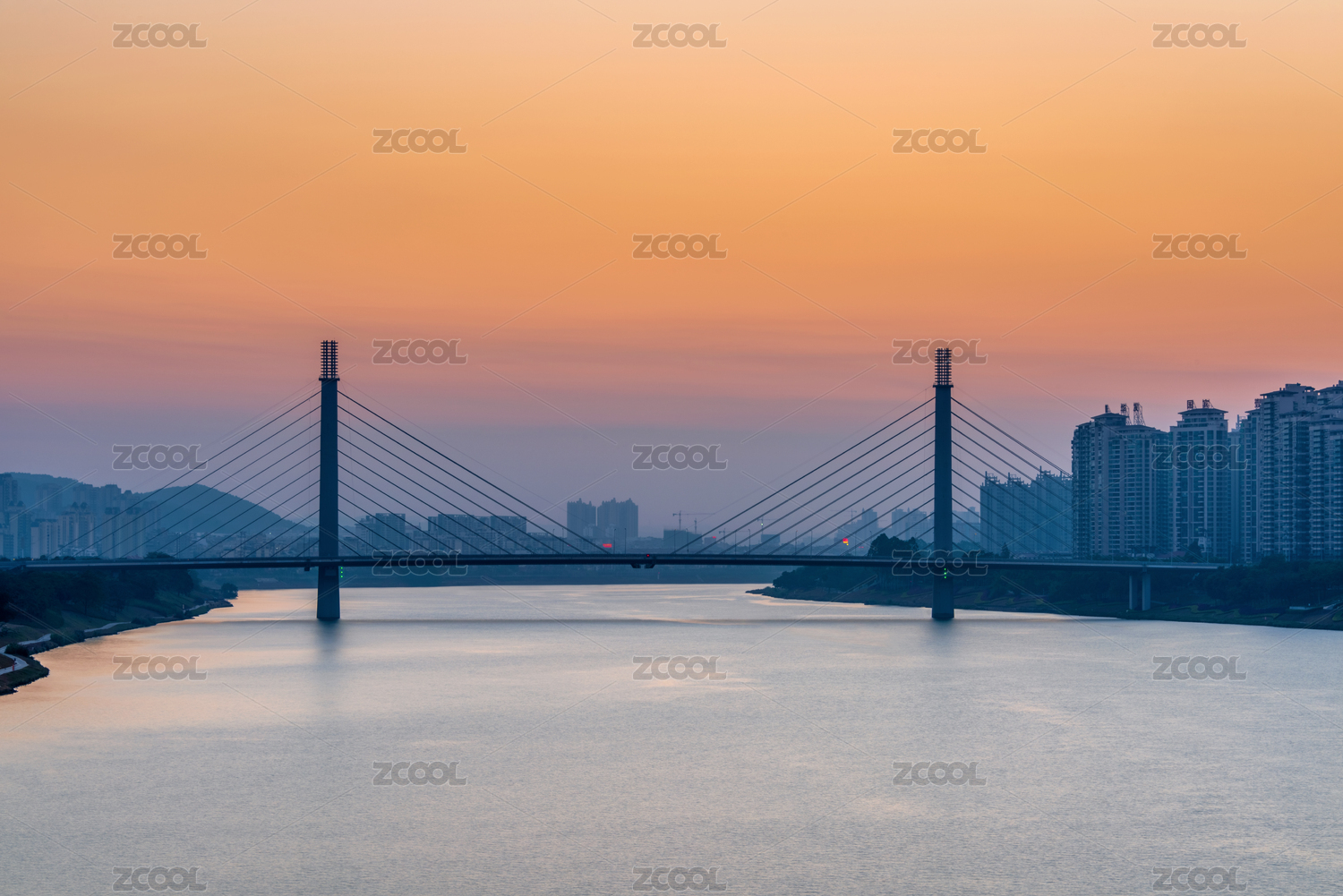 中國廣西南寧五象大橋落日風光