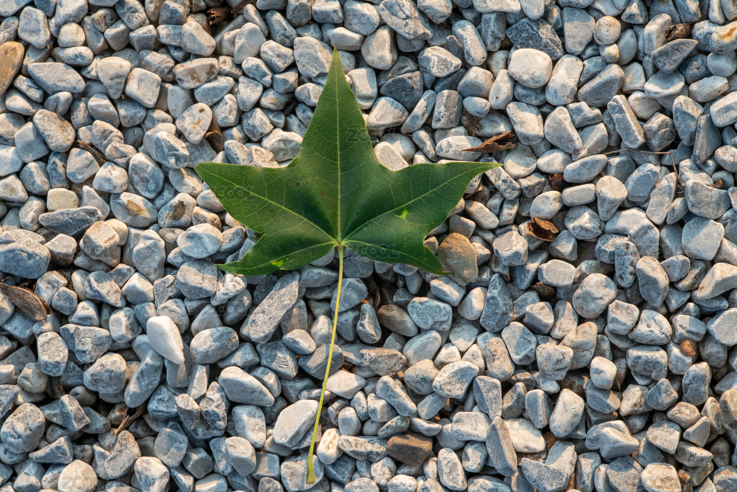 礫石上的綠色楓葉