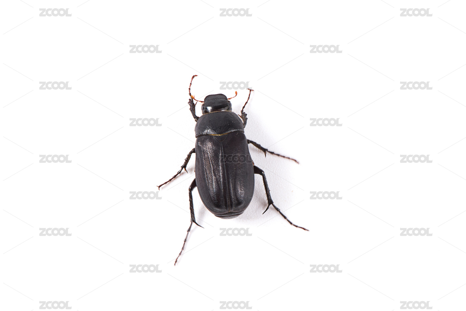 白色背景上一只死去的屎殼郎