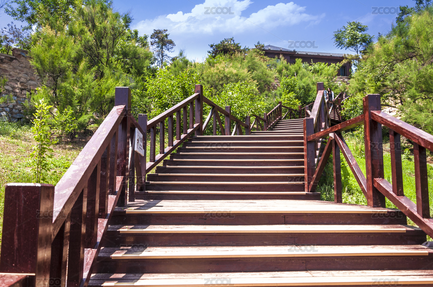 鴿子窩公園游客觀光的紅色木質(zhì)攀爬階梯