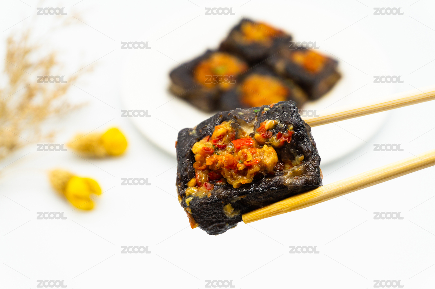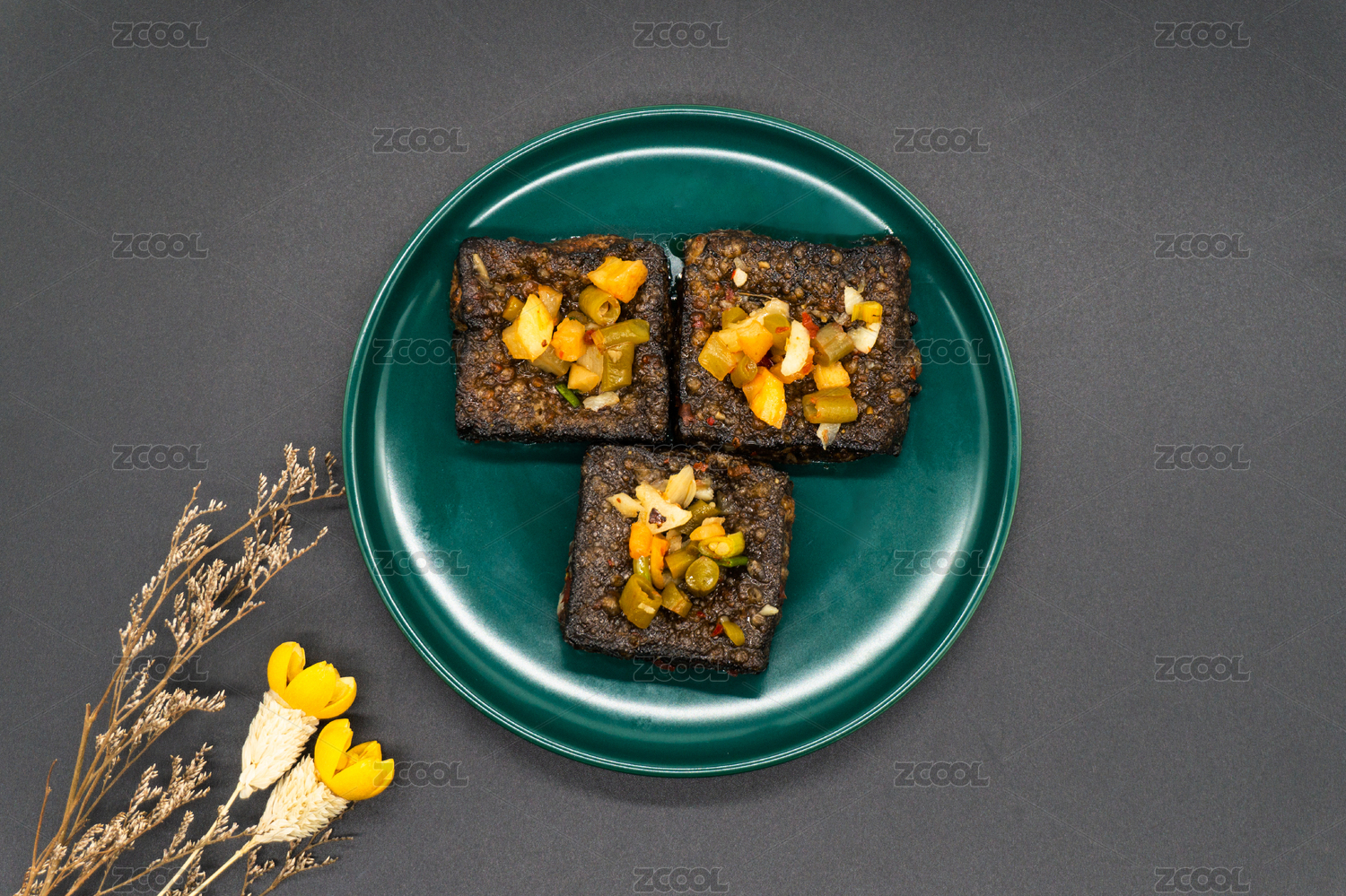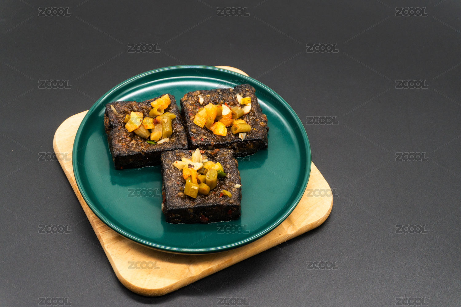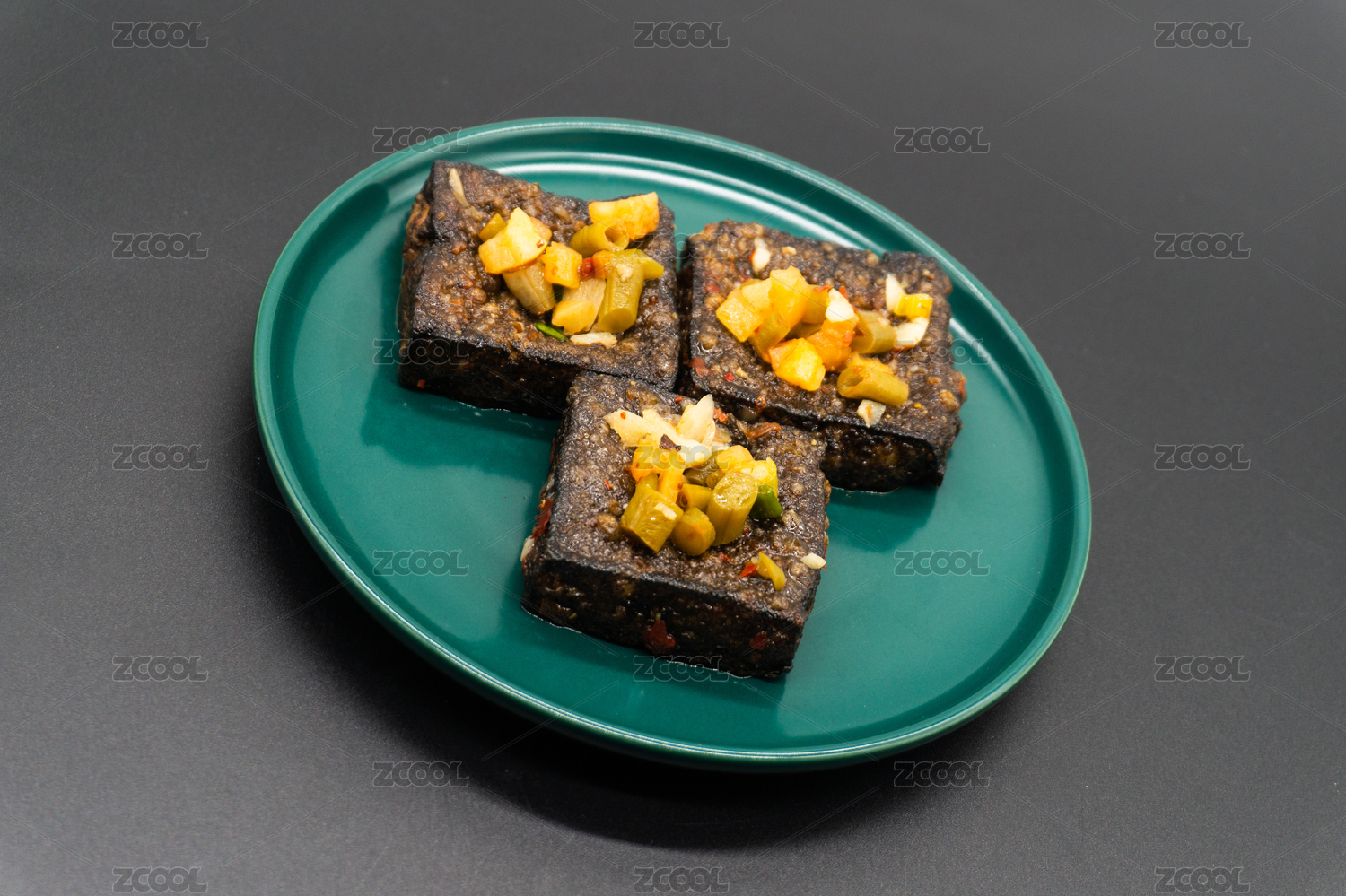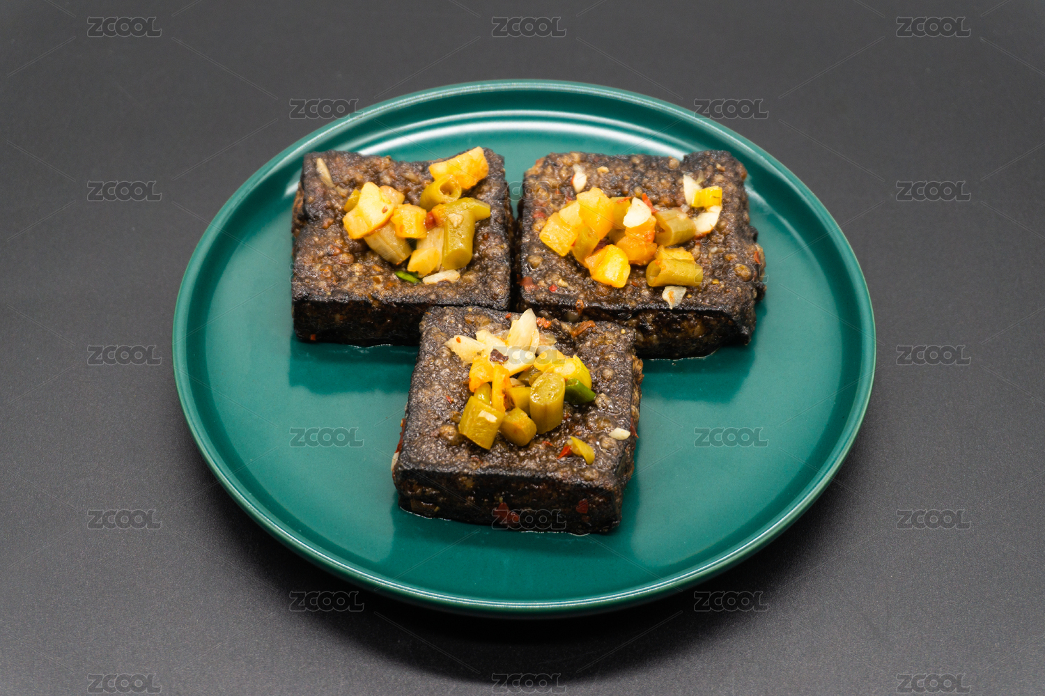 黑背景一盤傳統(tǒng)長沙小吃臭豆腐
