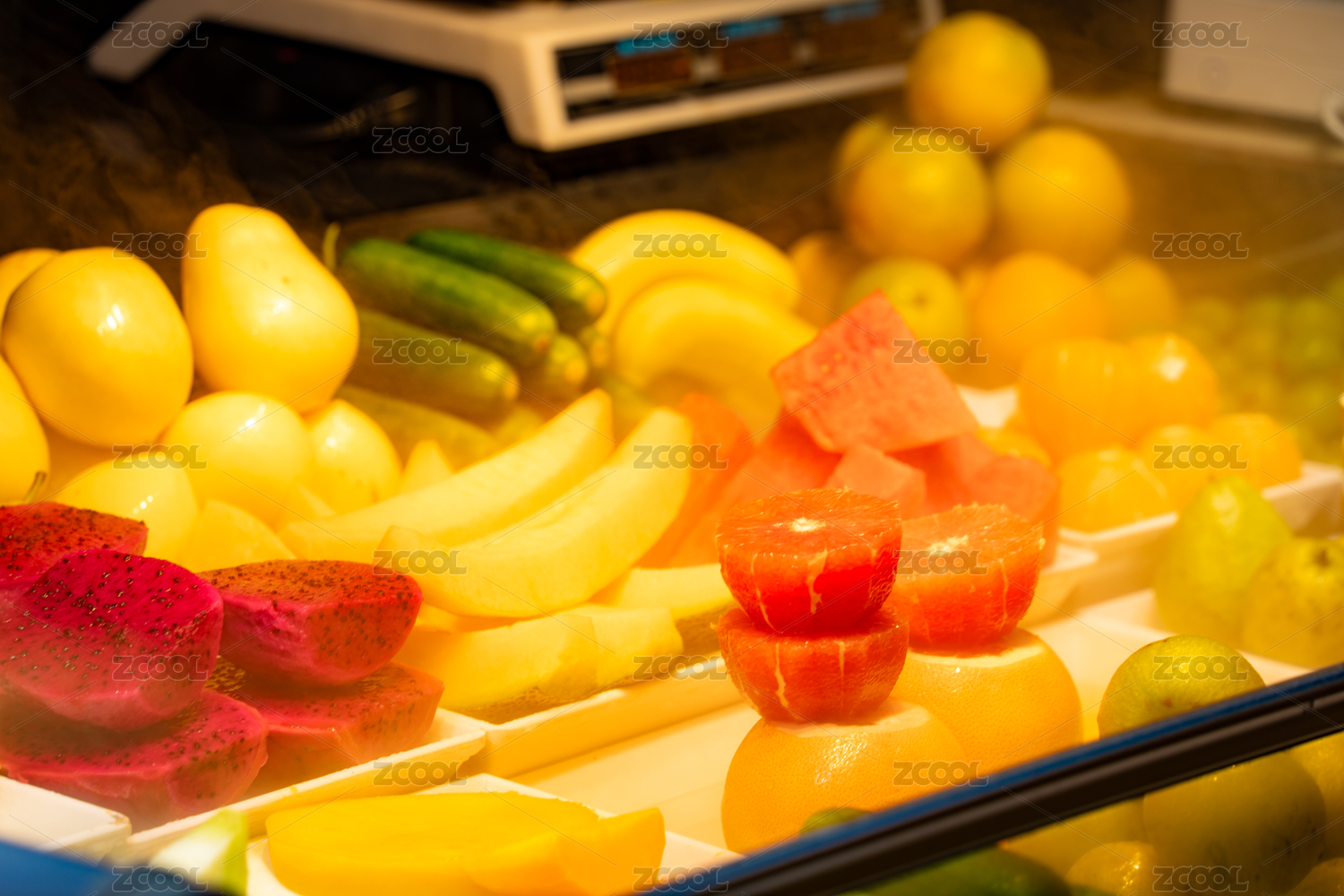 展示柜中新鮮多樣的水果