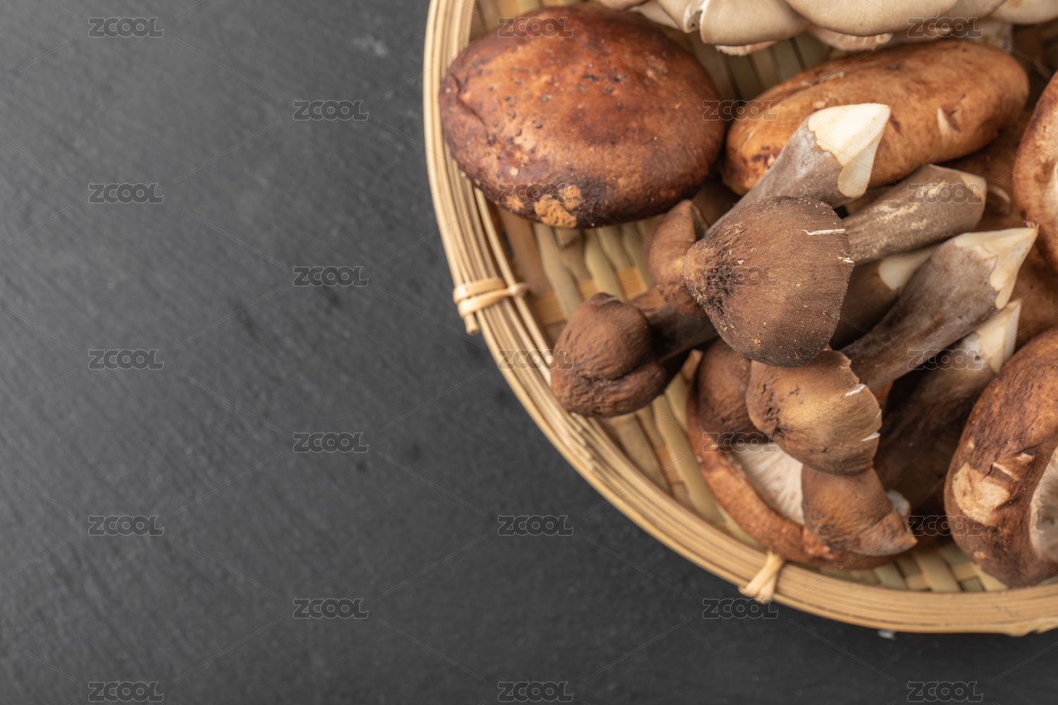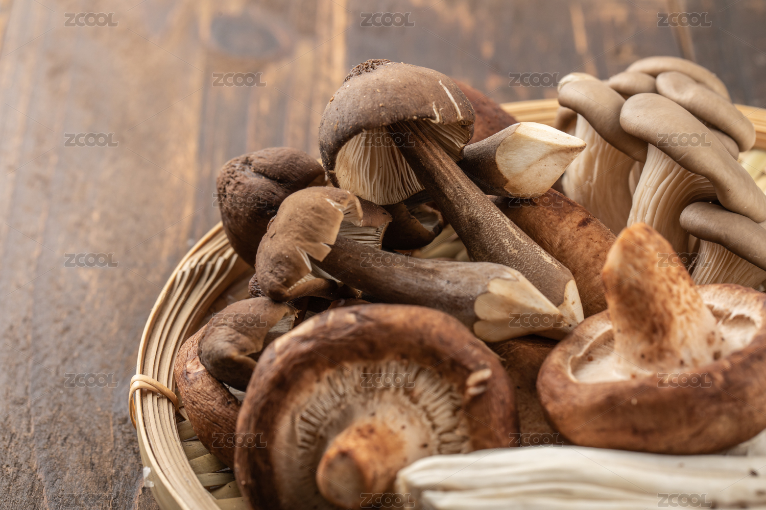 木制背景上的多種多樣的蘑菇