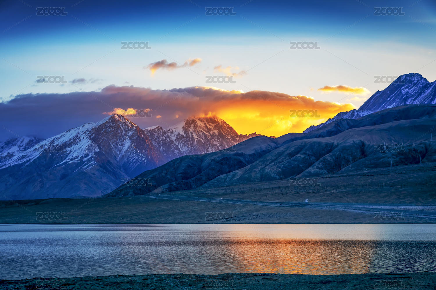 中國(guó)新疆帕米爾高原白沙湖公格爾峰美麗日出風(fēng)景