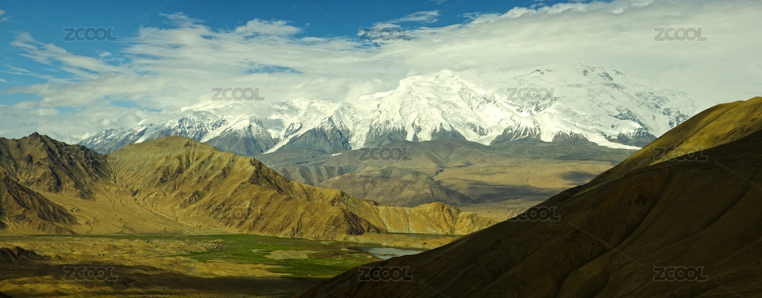 中國(guó)新疆中巴公路卡拉庫(kù)里湖和公格爾峰下蘇巴什草原秋季