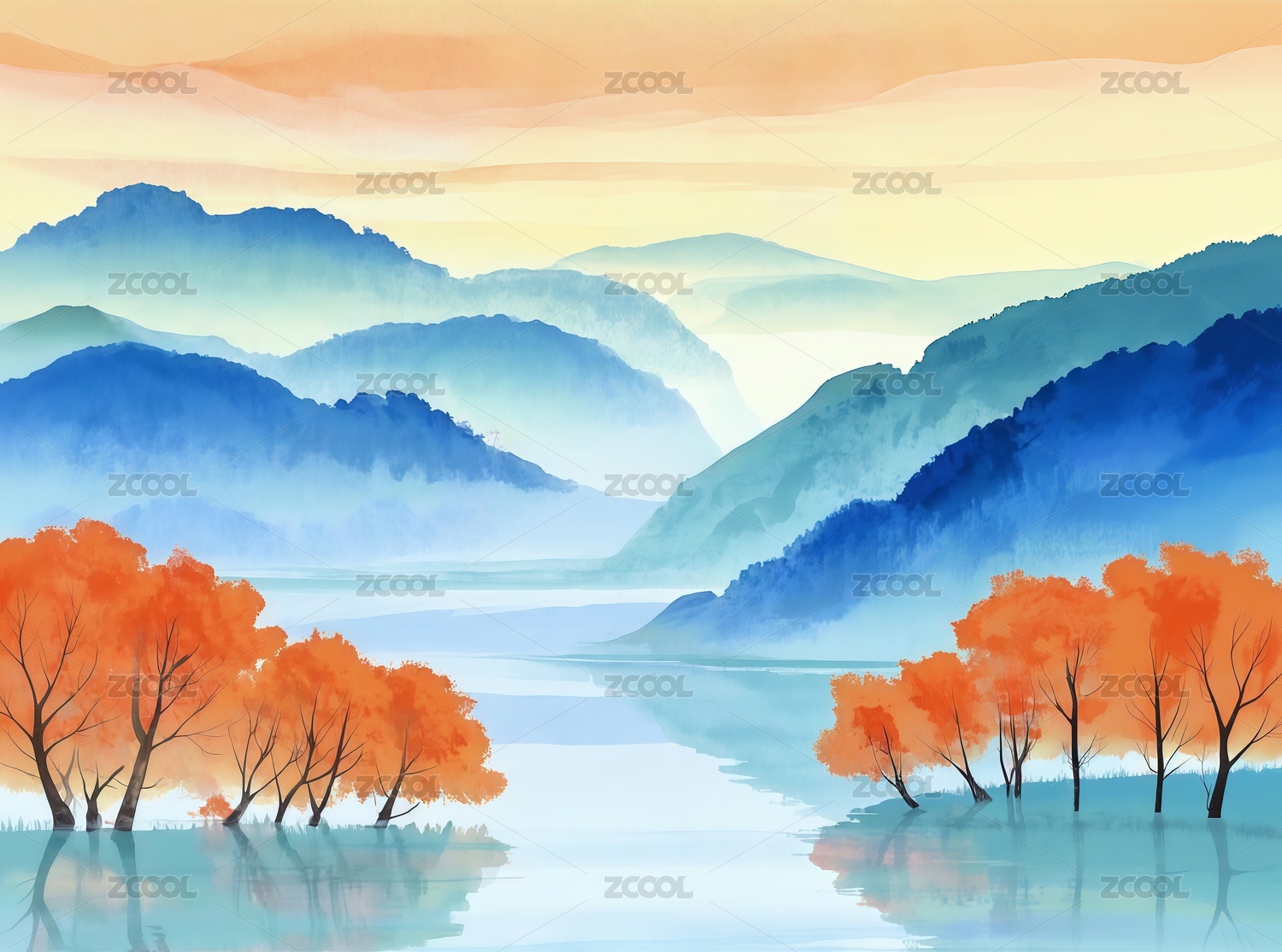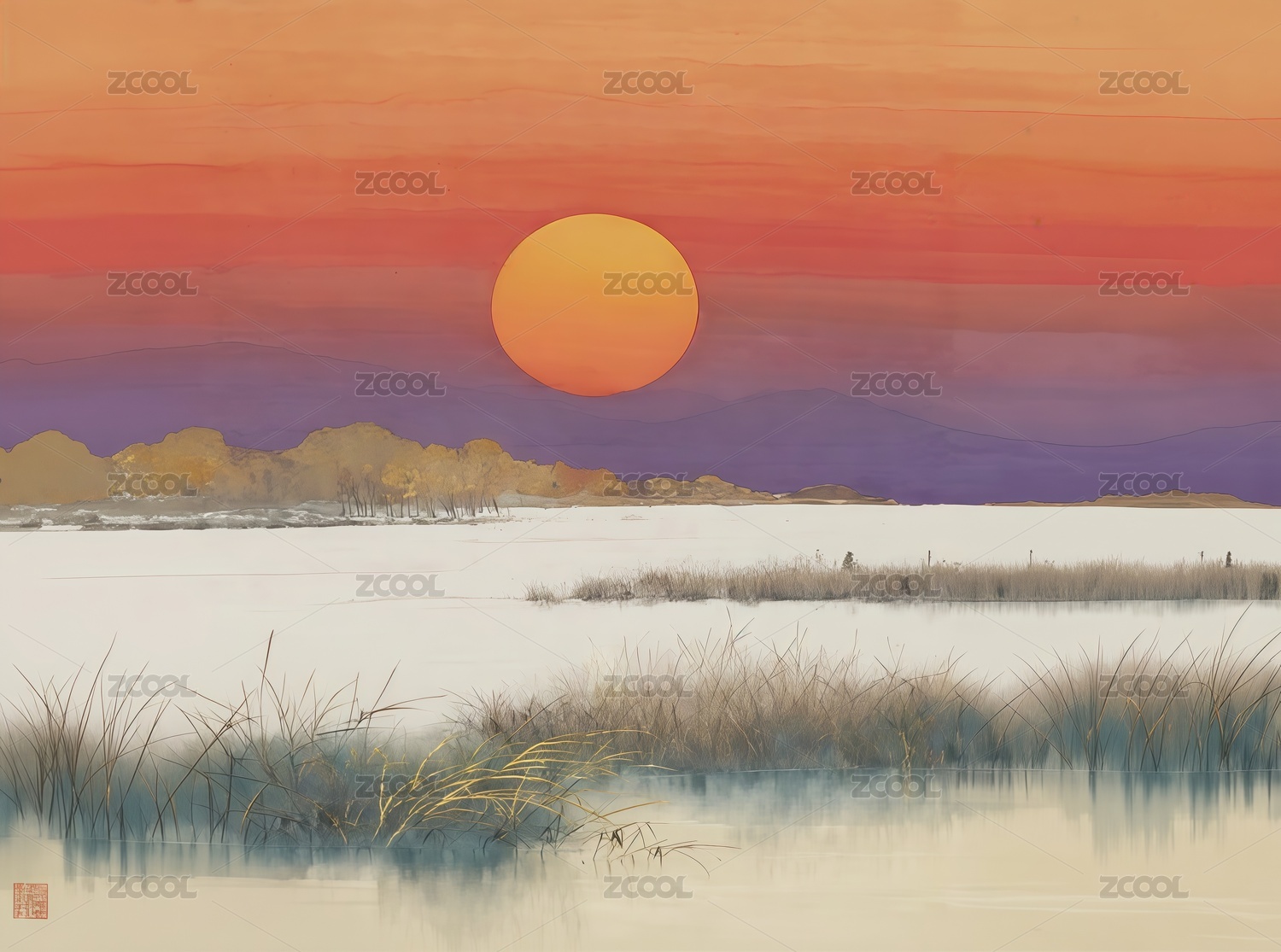 傳統(tǒng)二十四節(jié)氣小暑分鏡水彩場(chǎng)景插畫(huà)荷花西