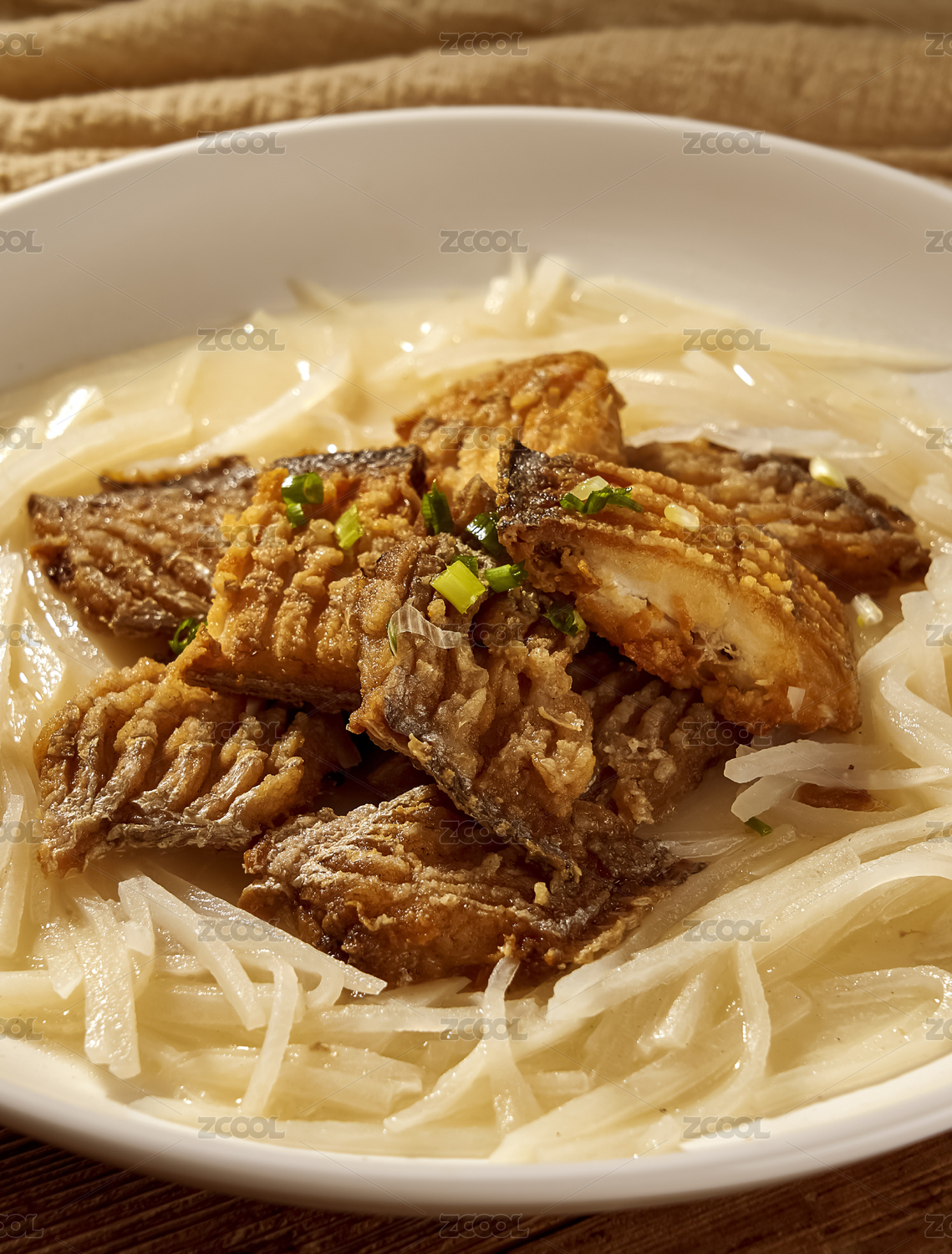 暖色背景下的養(yǎng)生木瓜燉帶魚(yú)