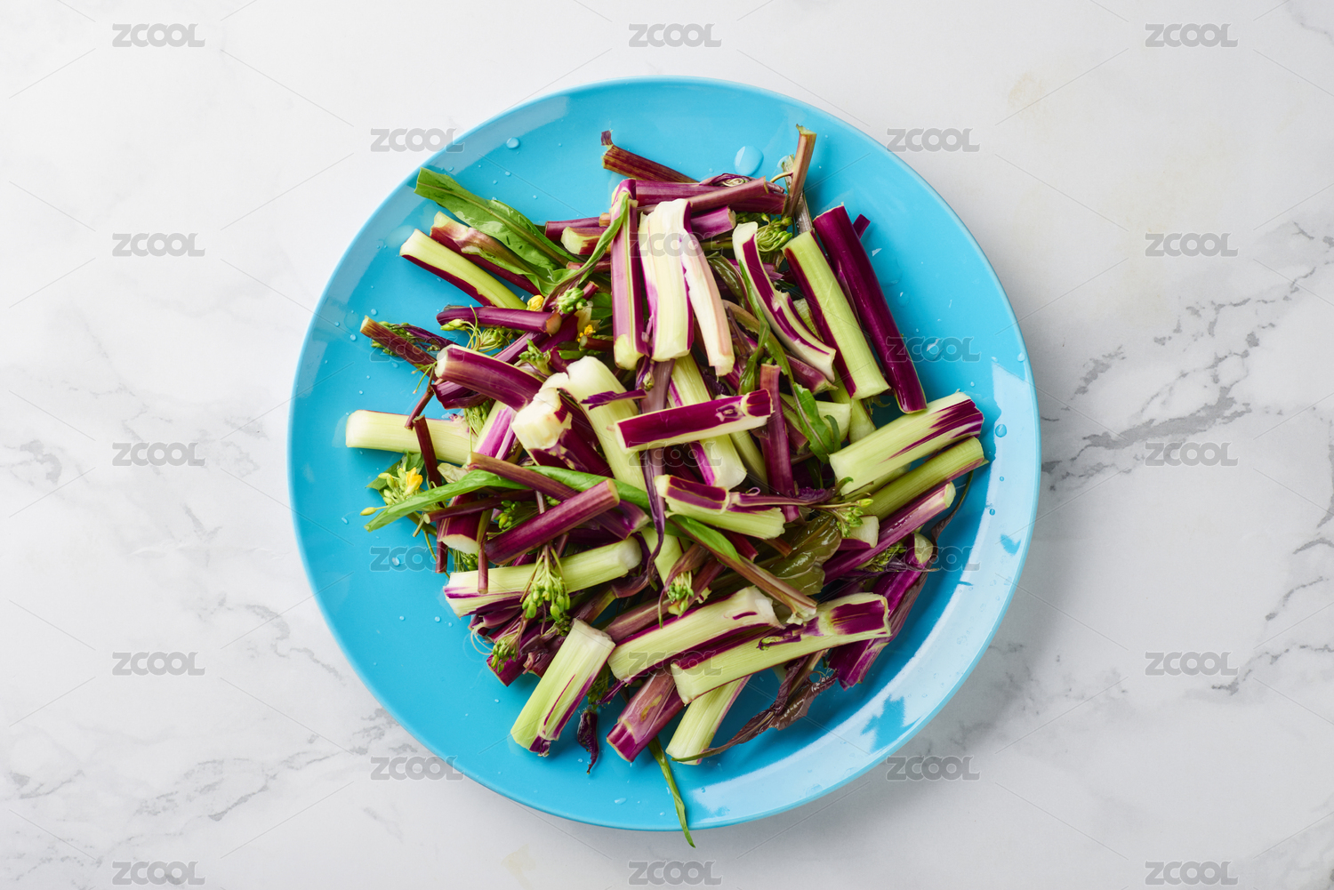 白瓷盤(pán)里新鮮脆嫩的洪山菜薹