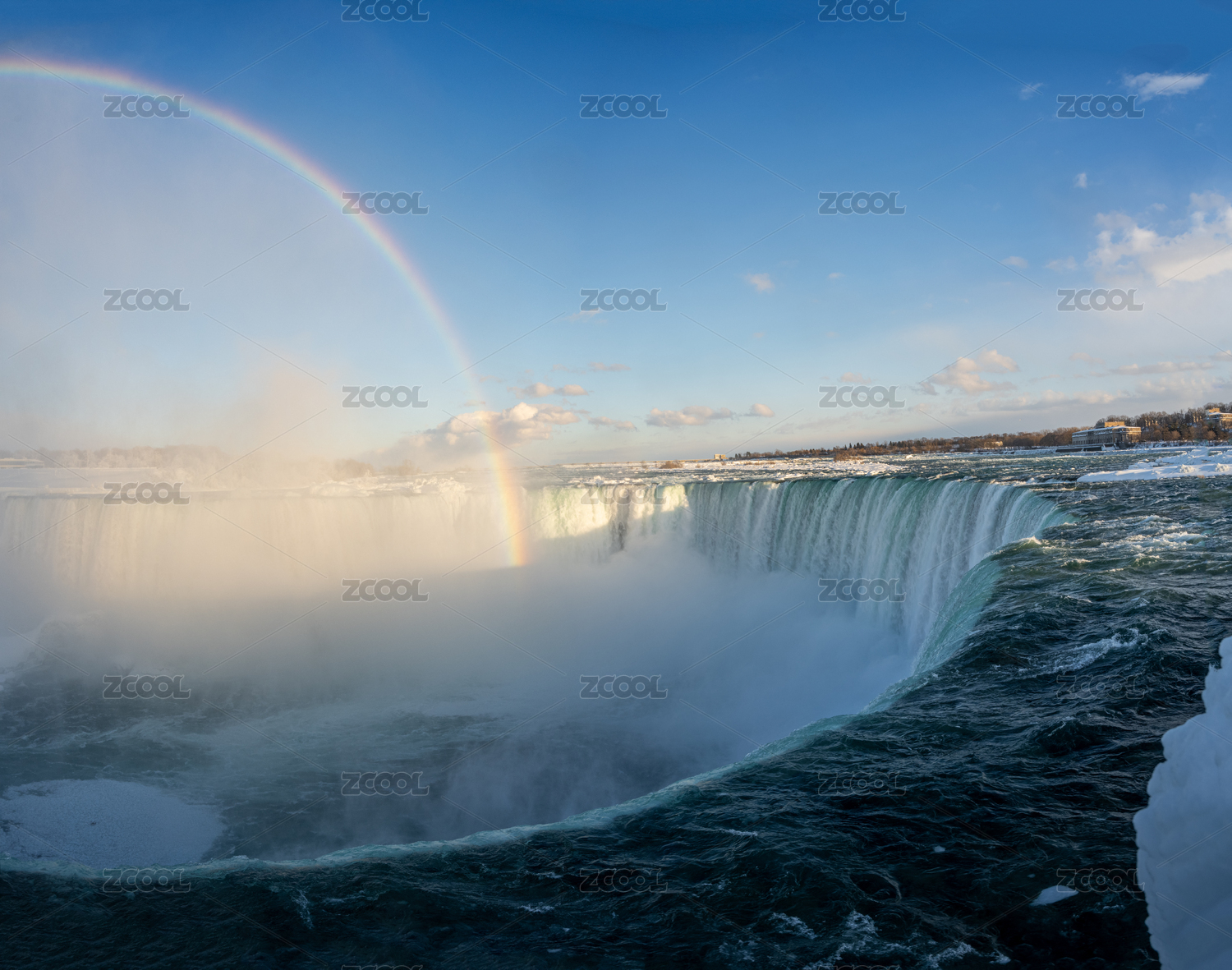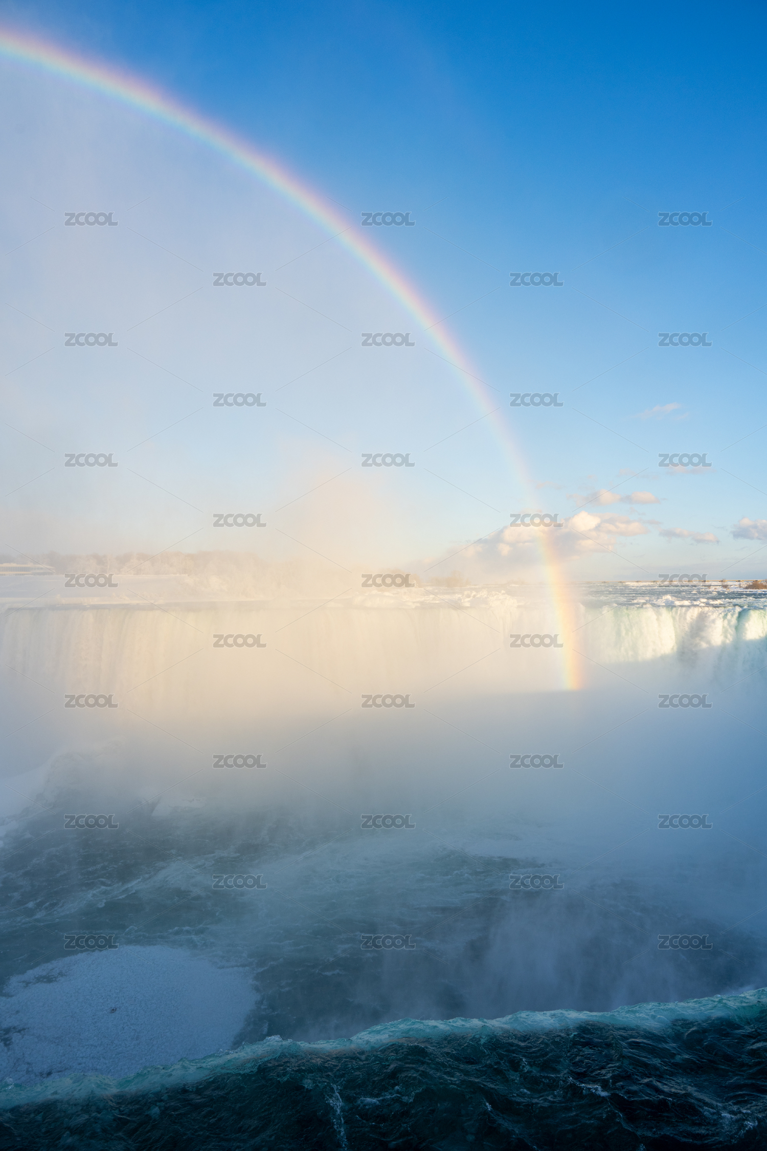 美國加拿大跨國瀑布尼亞加拉瀑布映彩虹