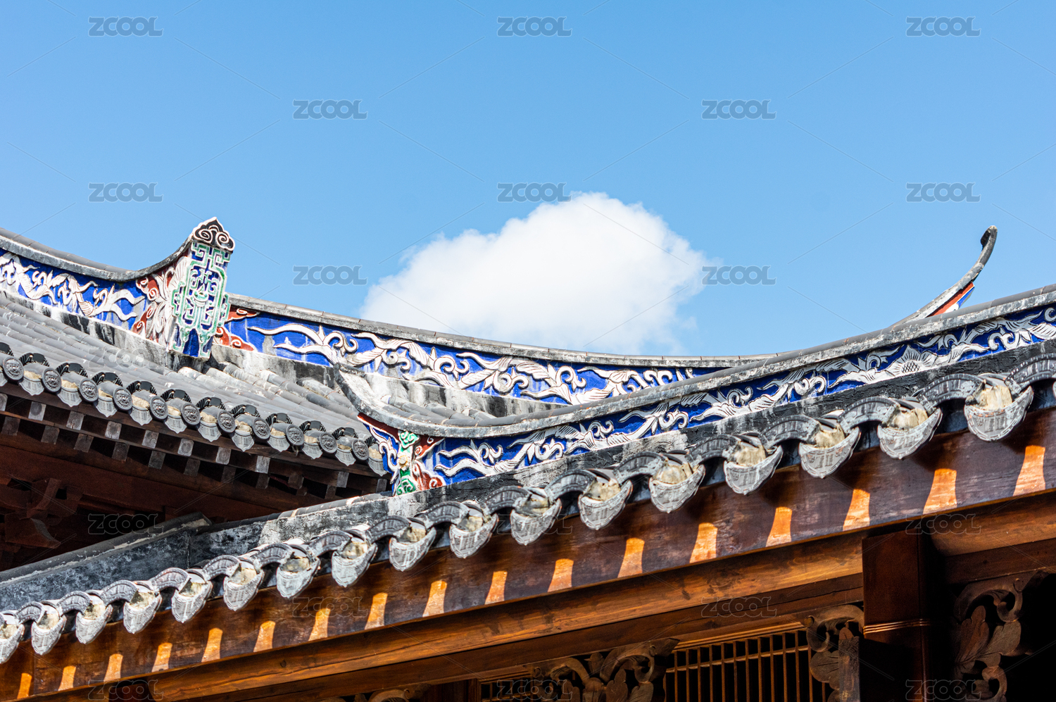 中國福州閩派建筑風(fēng)格屋檐屋脊特寫