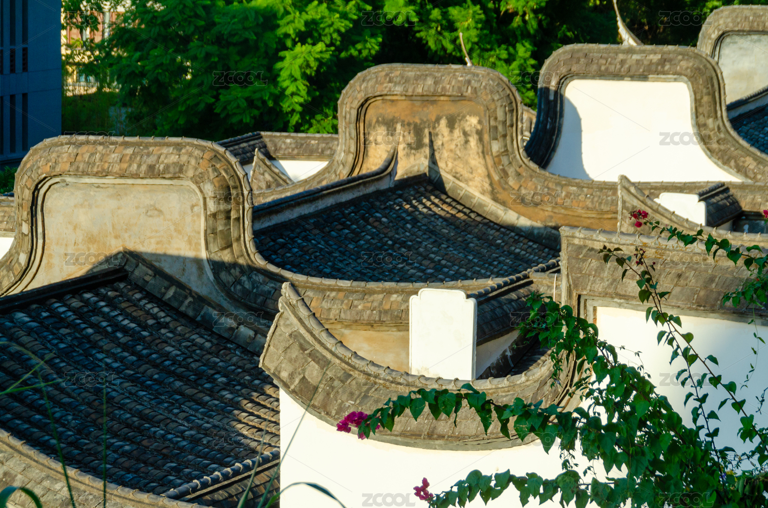 福建省福州市于山俯瞰閩派建筑特色馬鞍墻