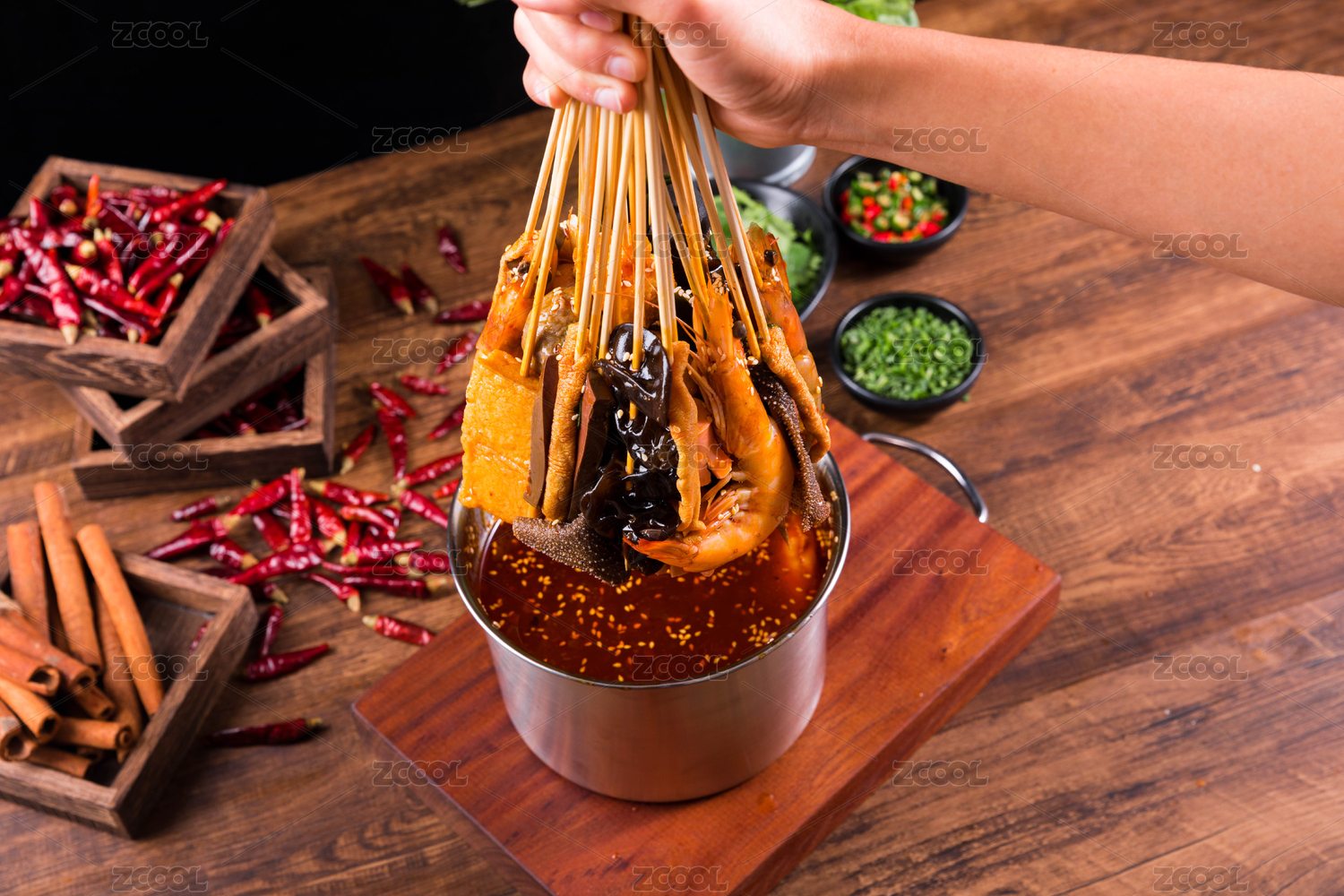手握一把剛從火鍋麻辣濃湯拿起的串串