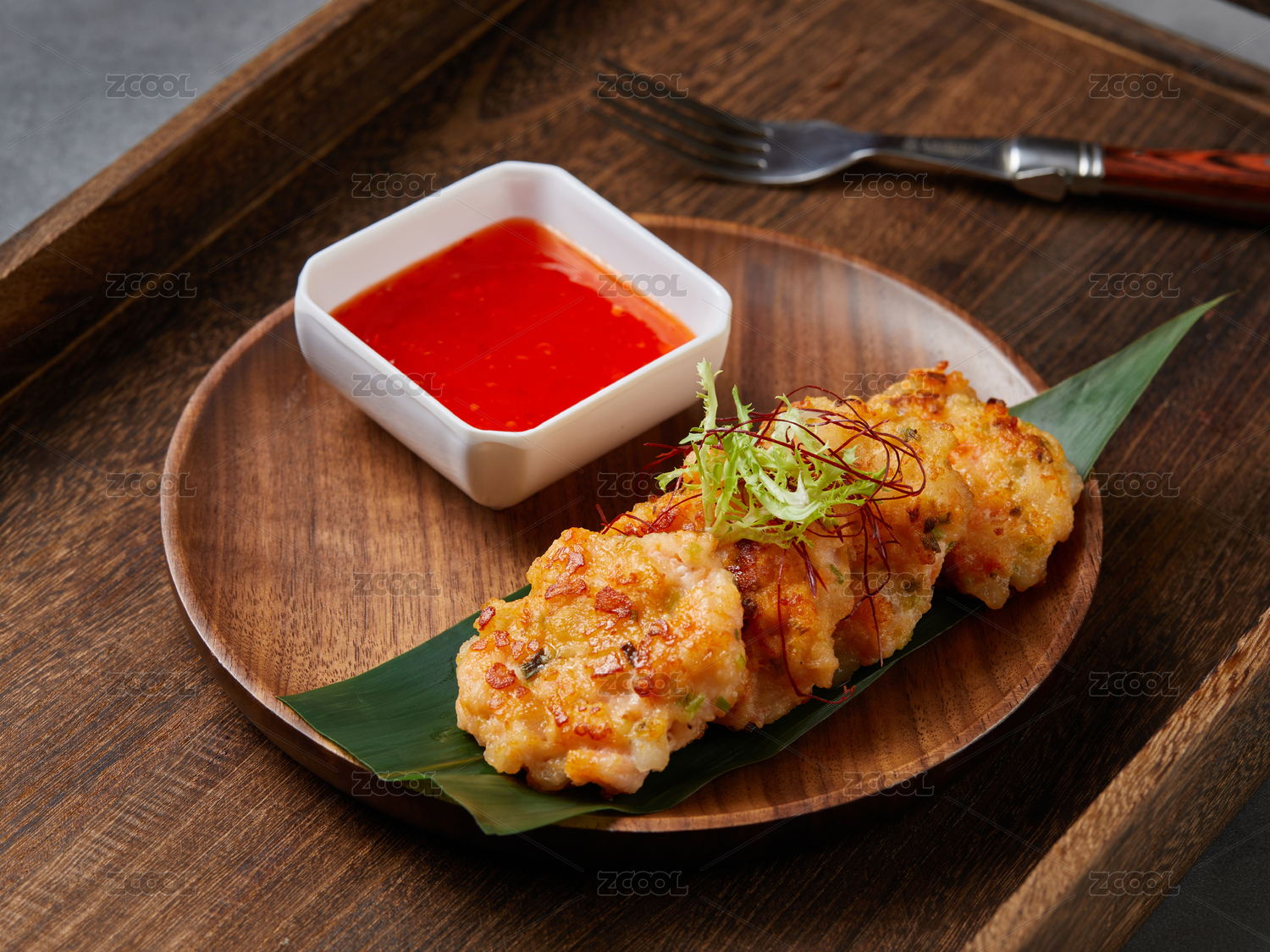中國廣西北海街頭美味的炸蝦串和蝦餅零食