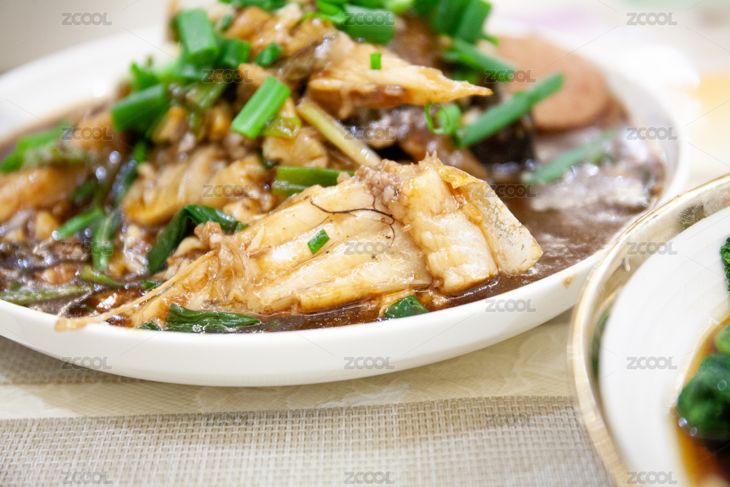 中國傳統(tǒng)美食晚餐紅燒鱸魚特寫
