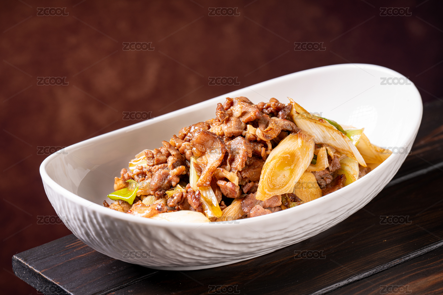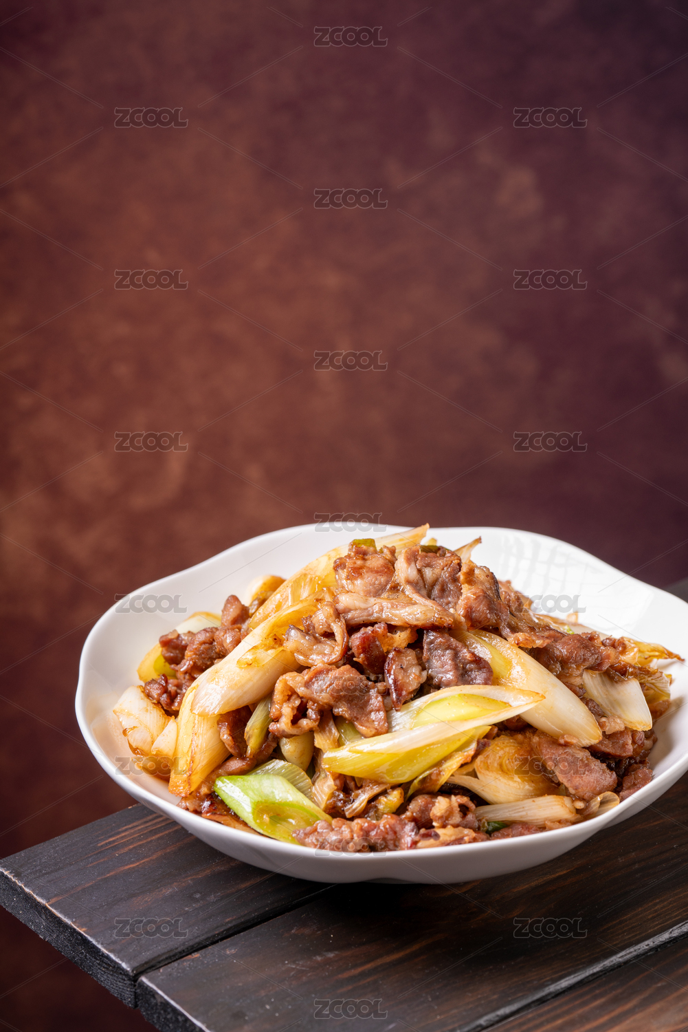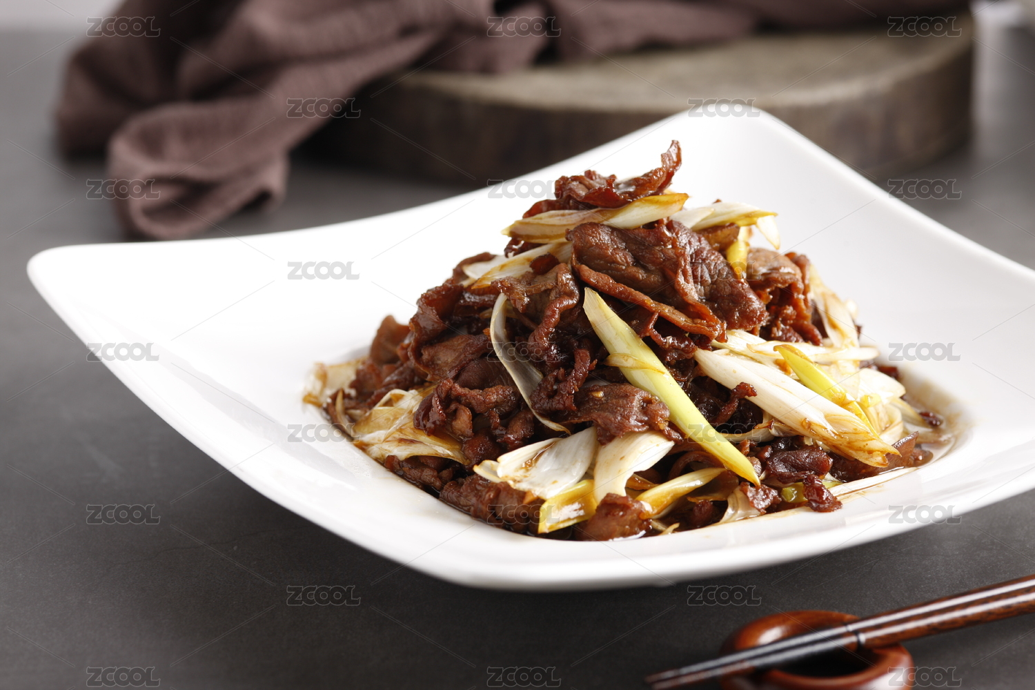 方瓷盤裝的大蔥爆羊肉