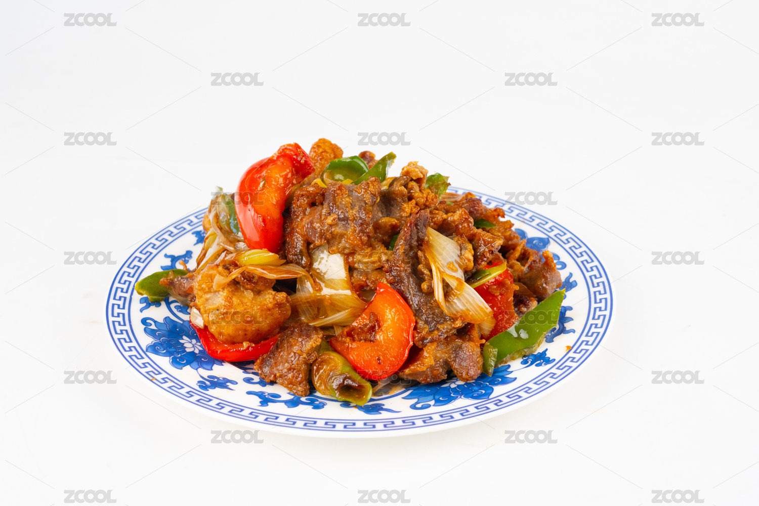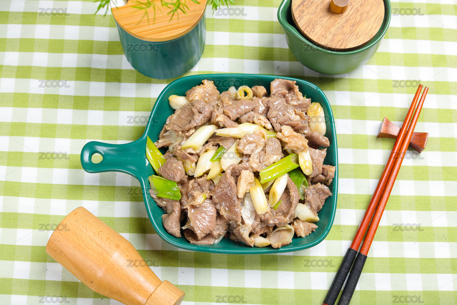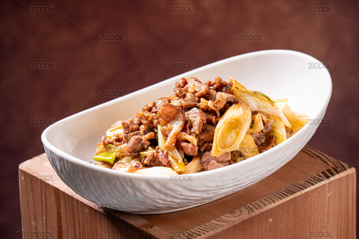 方瓷盤裝的大蔥爆羊肉