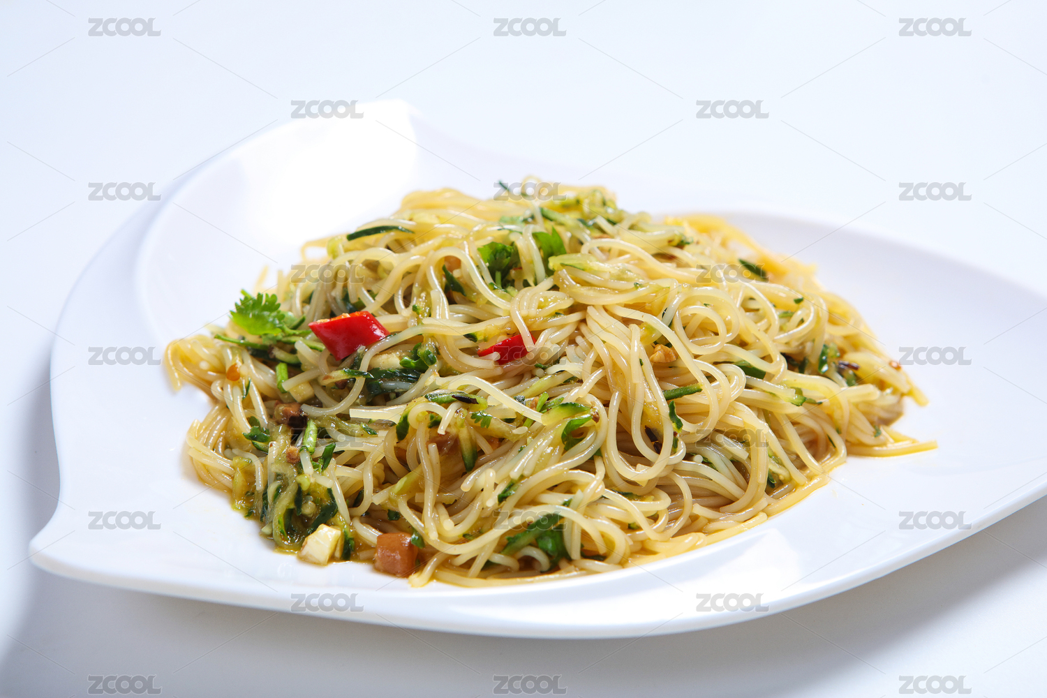 一份涼拌米粉米線放在白色底板上