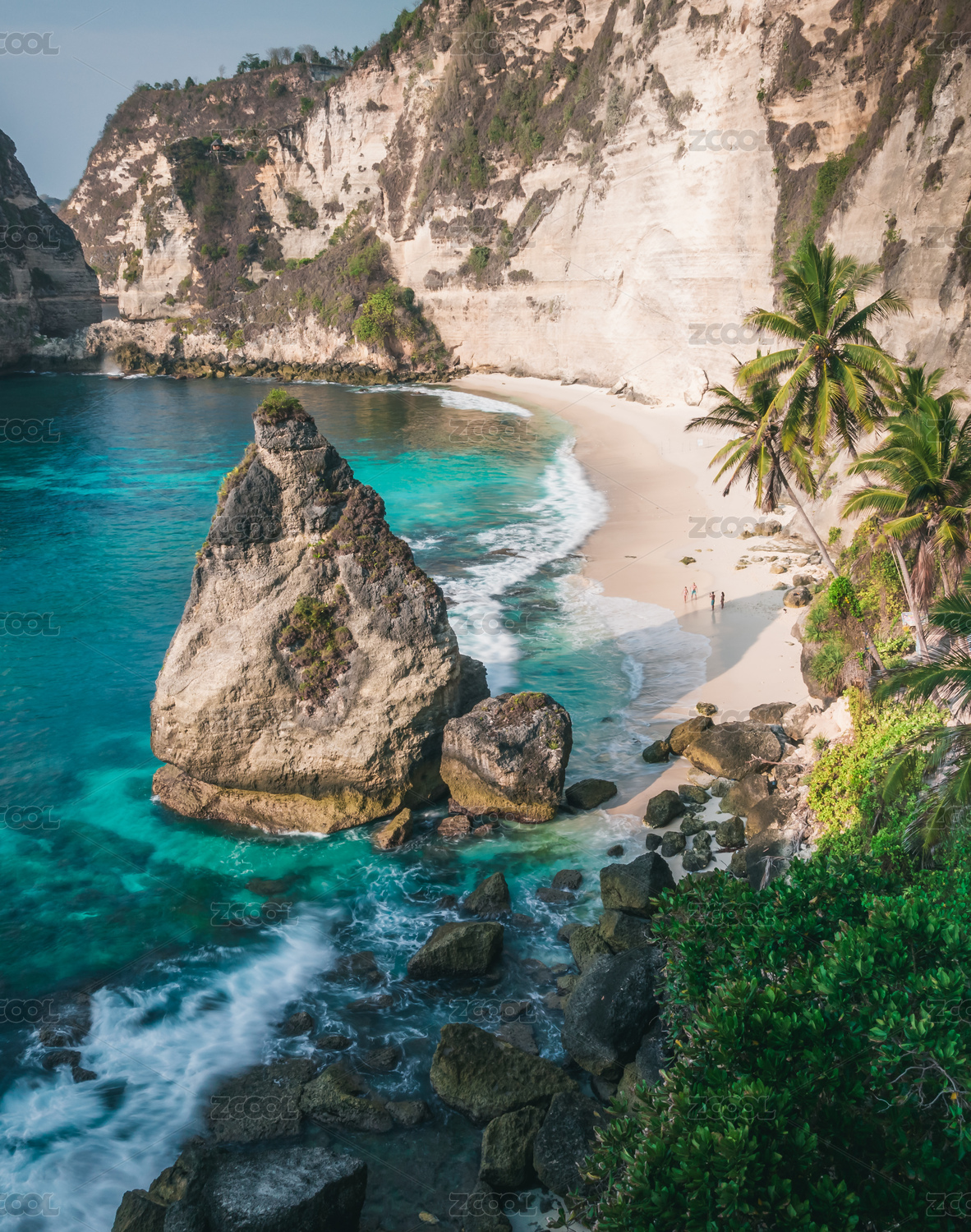 印尼佩尼達(dá)島懸崖鉆石海灘熱帶島嶼棕櫚樹自