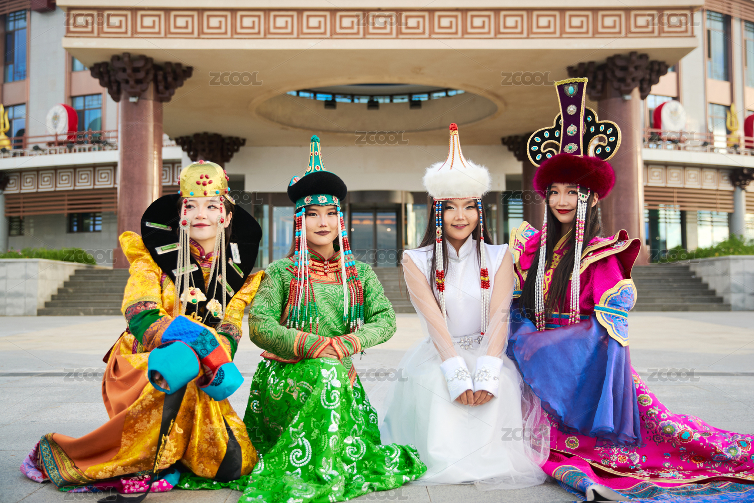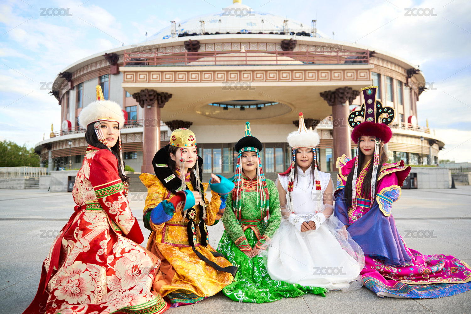 身穿蒙古族各部落傳統(tǒng)服飾的蒙古族姑娘