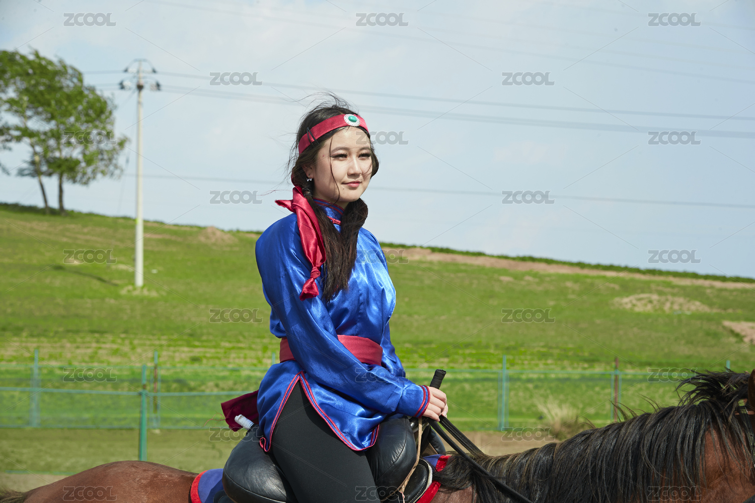 草原上騎馬馳騁的美麗蒙古族姑娘