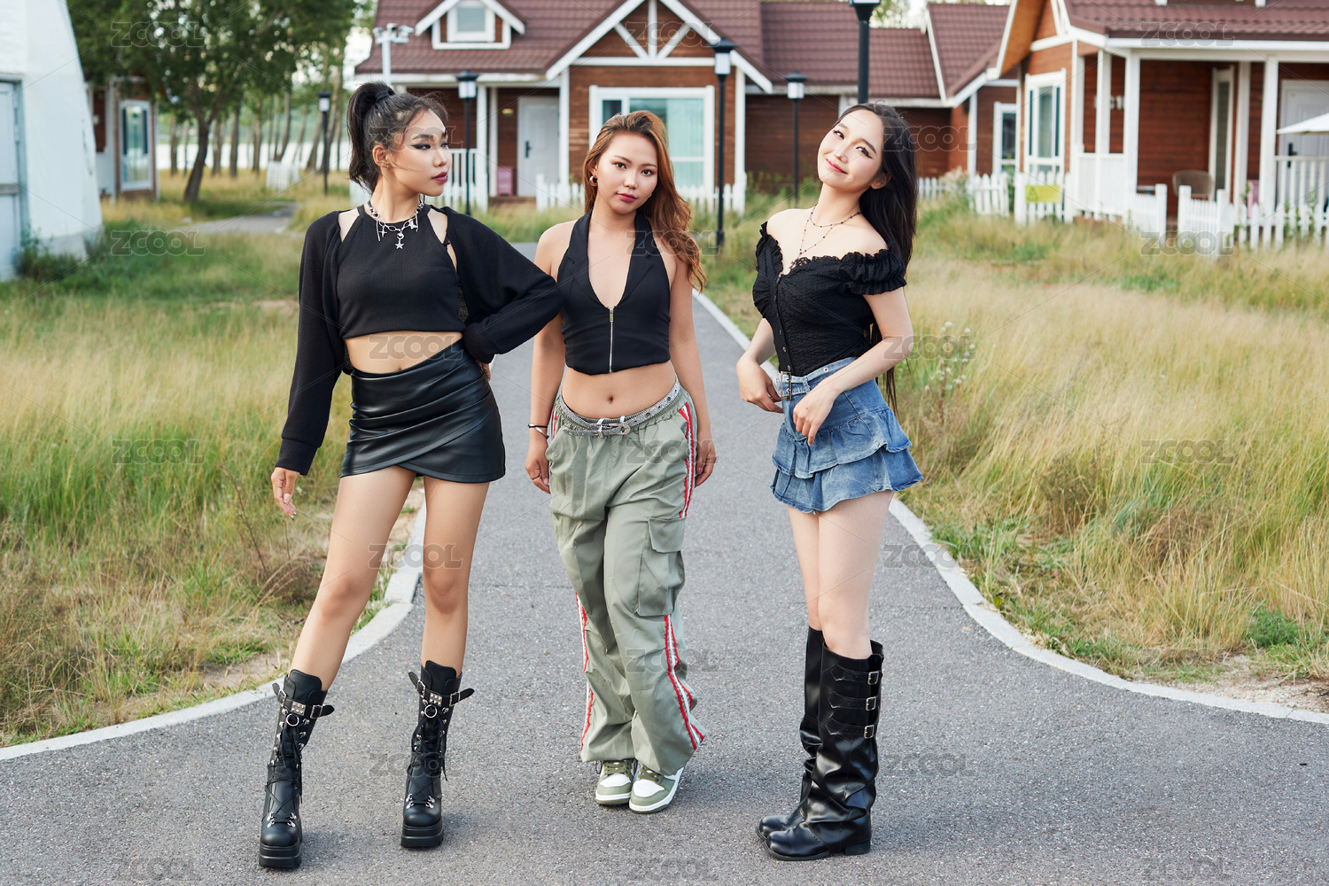 在旅游景區(qū)民宿外游玩拍照的蒙古族姑娘們