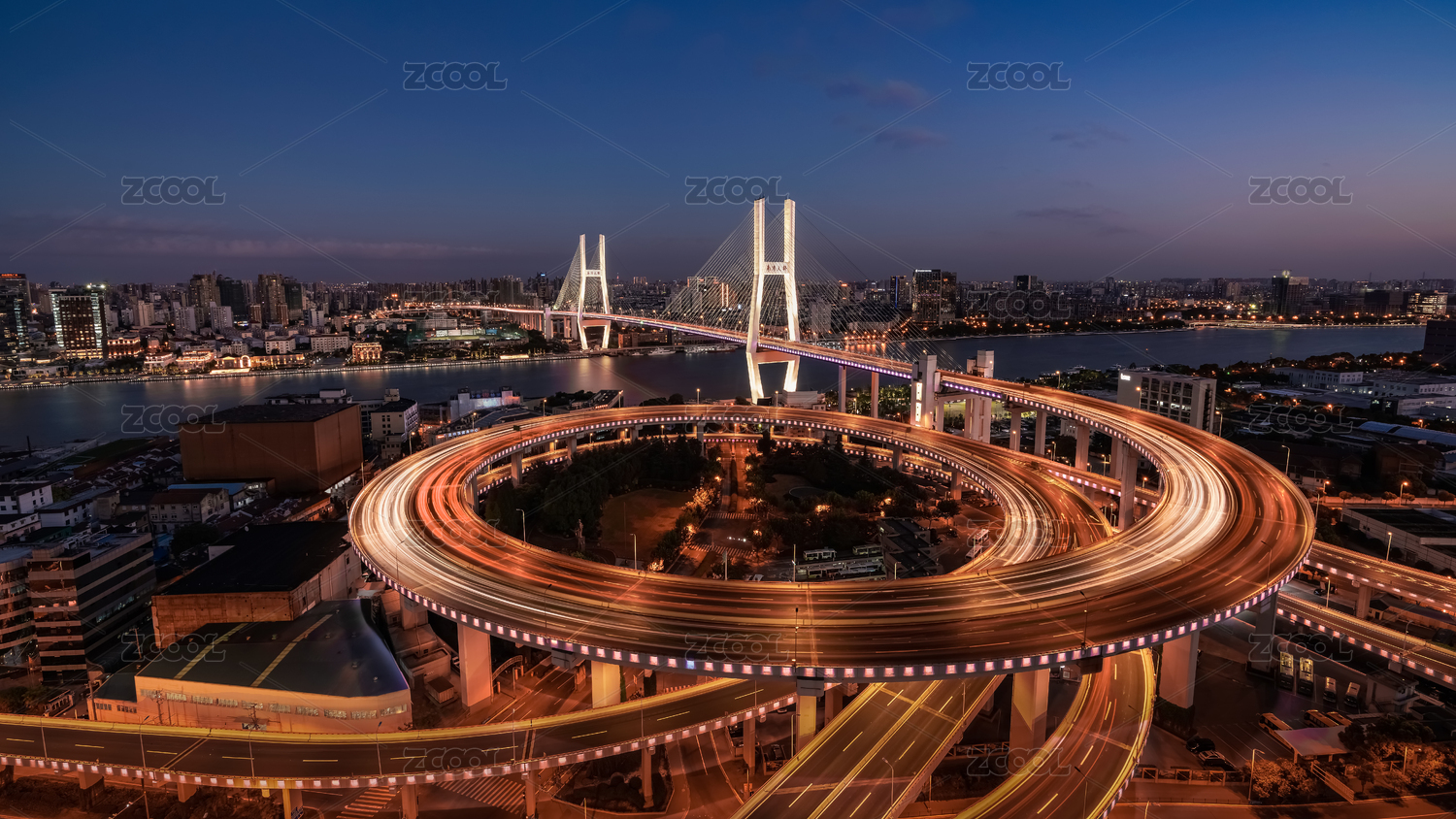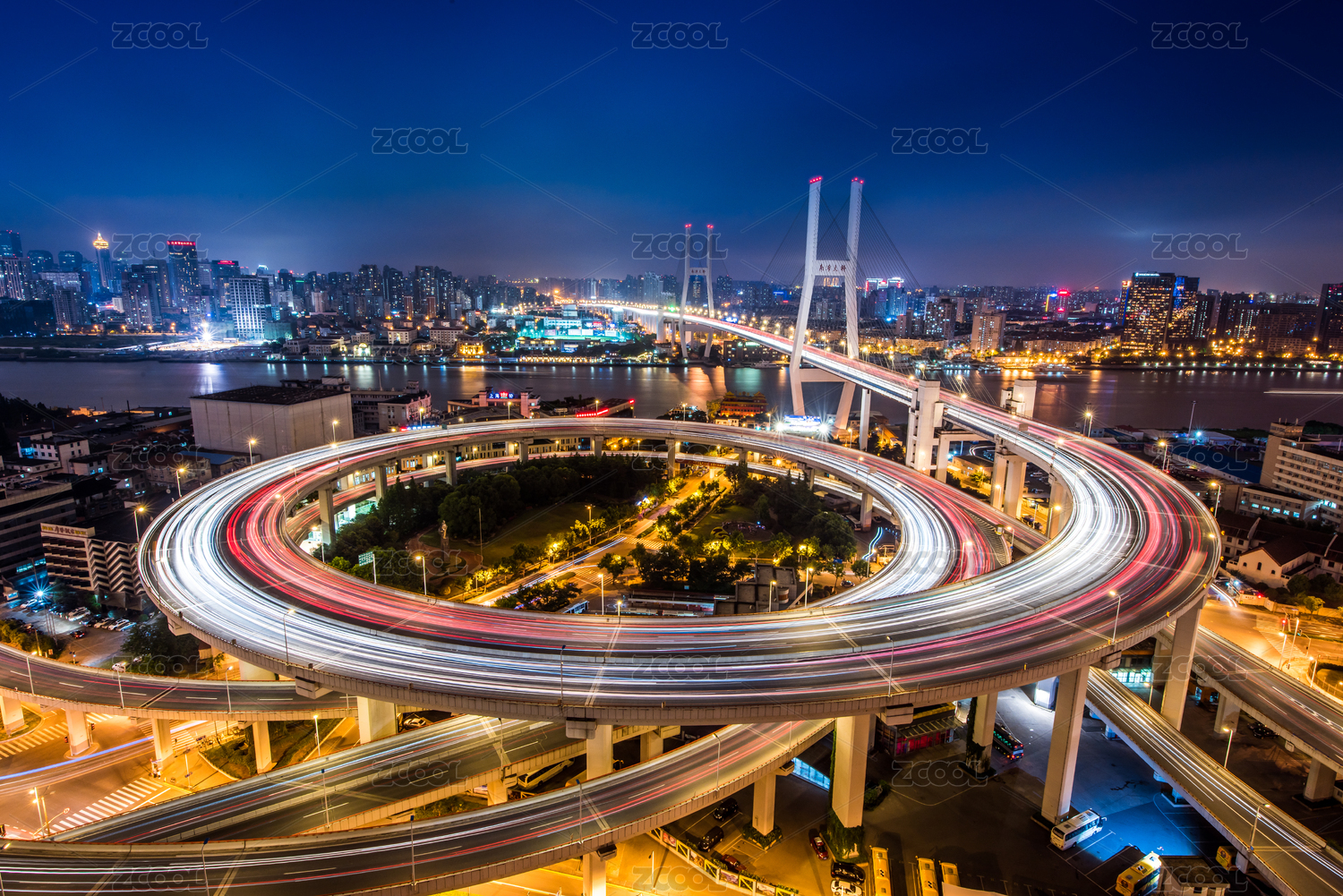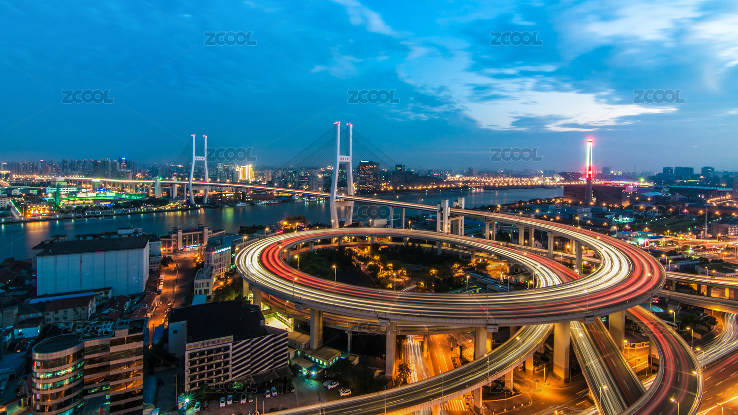上海南浦大橋城市風光夜景