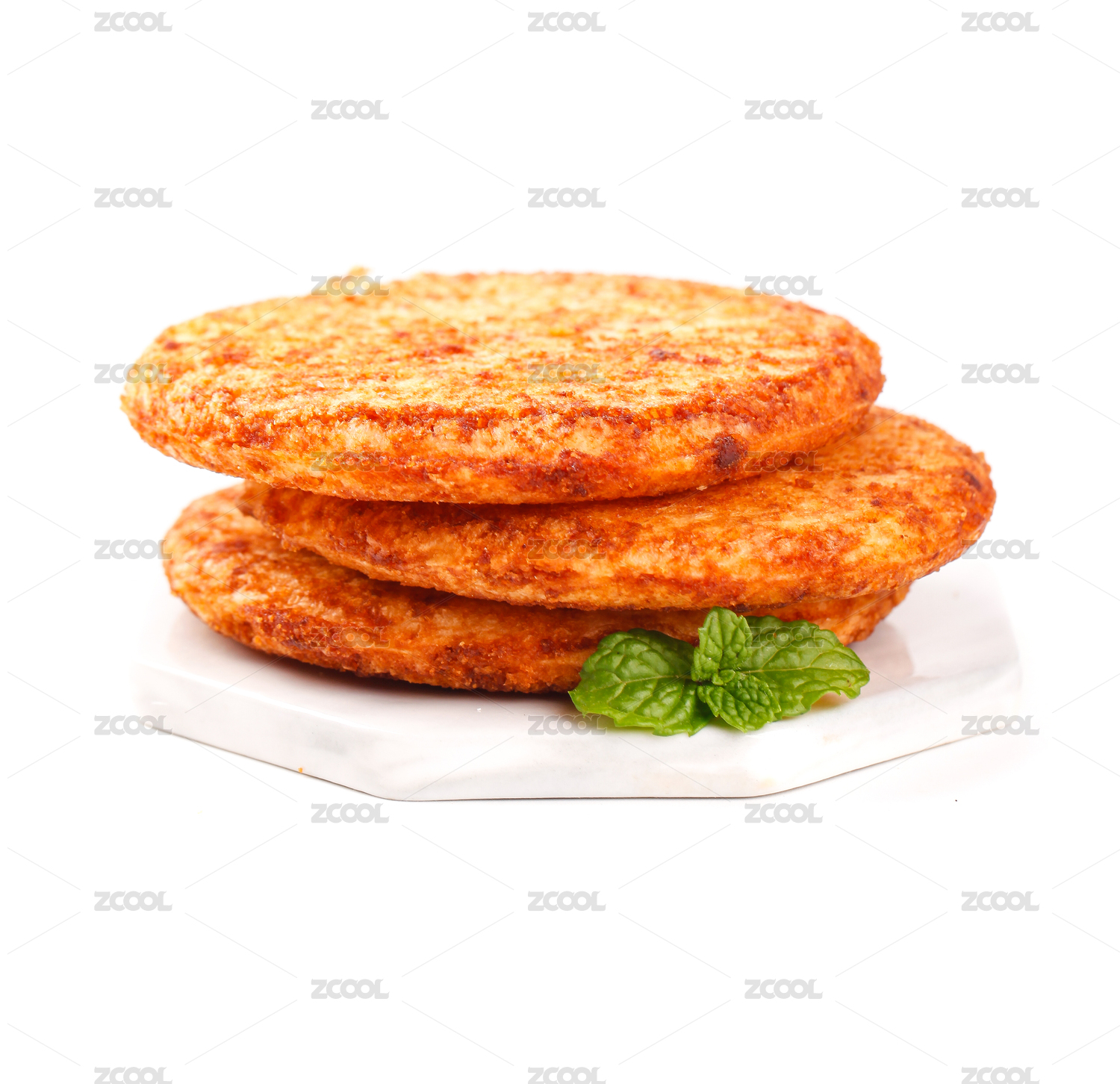 白底白石墊上放著三塊完整的醬油餅干