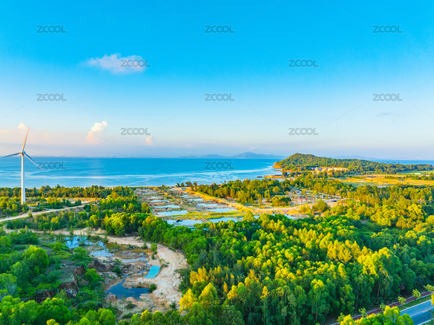 汕尾市城區(qū)紅海灣施公寮風車島連島路航拍