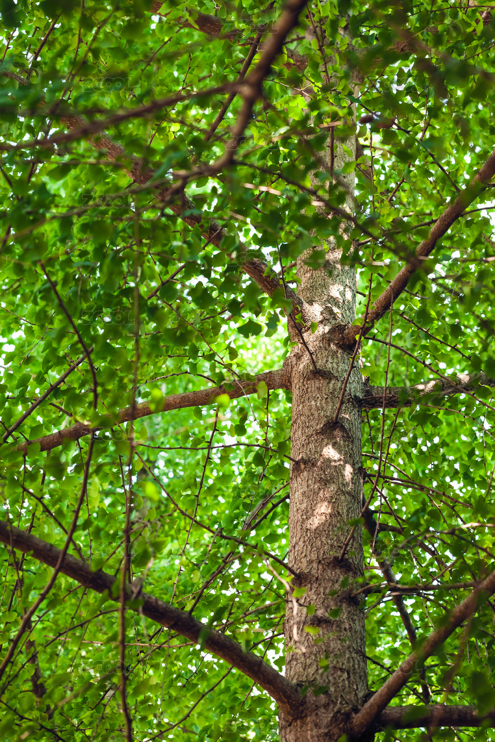 高大的銀杏樹粗壯的樹干枝繁葉茂
