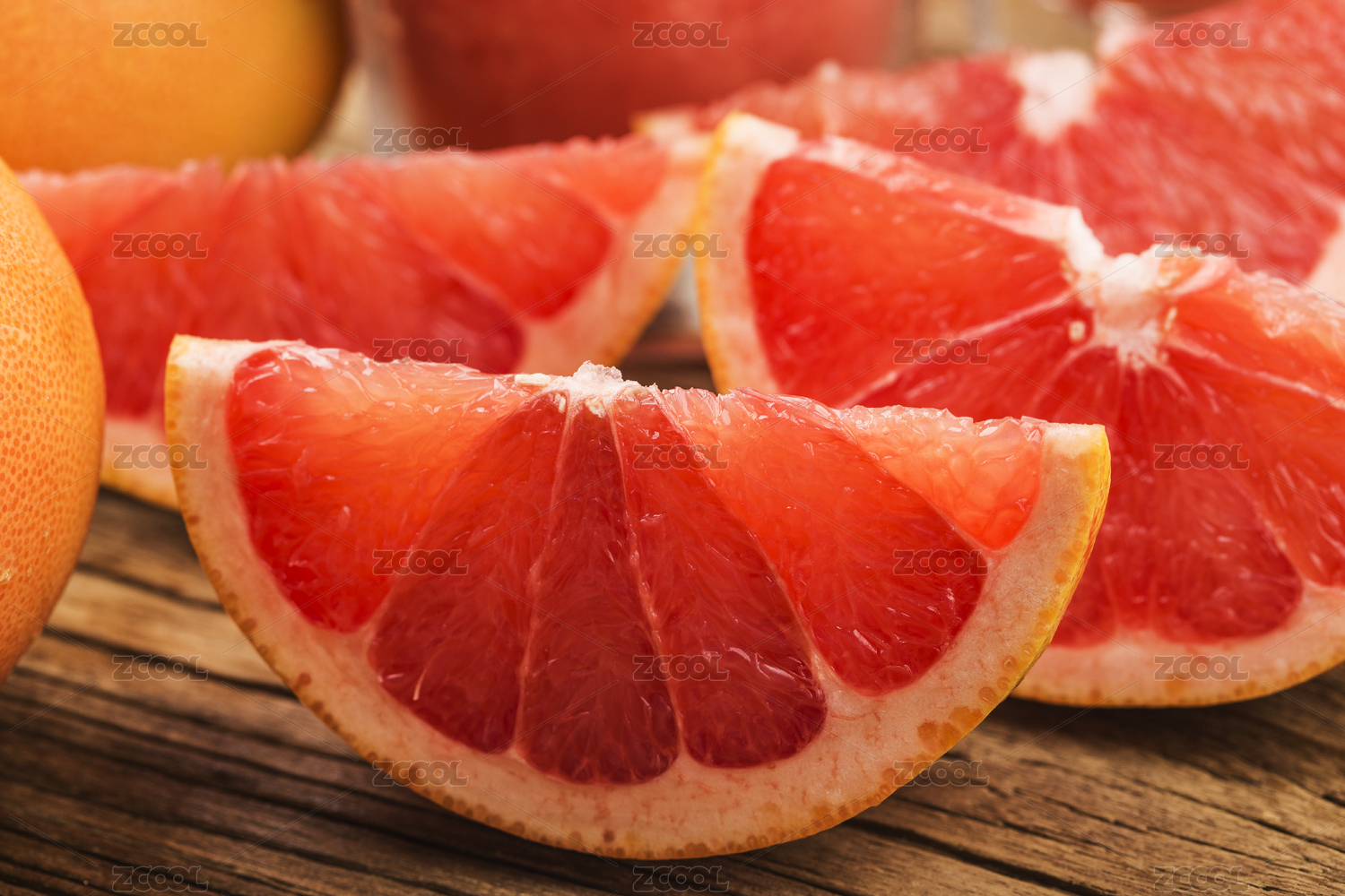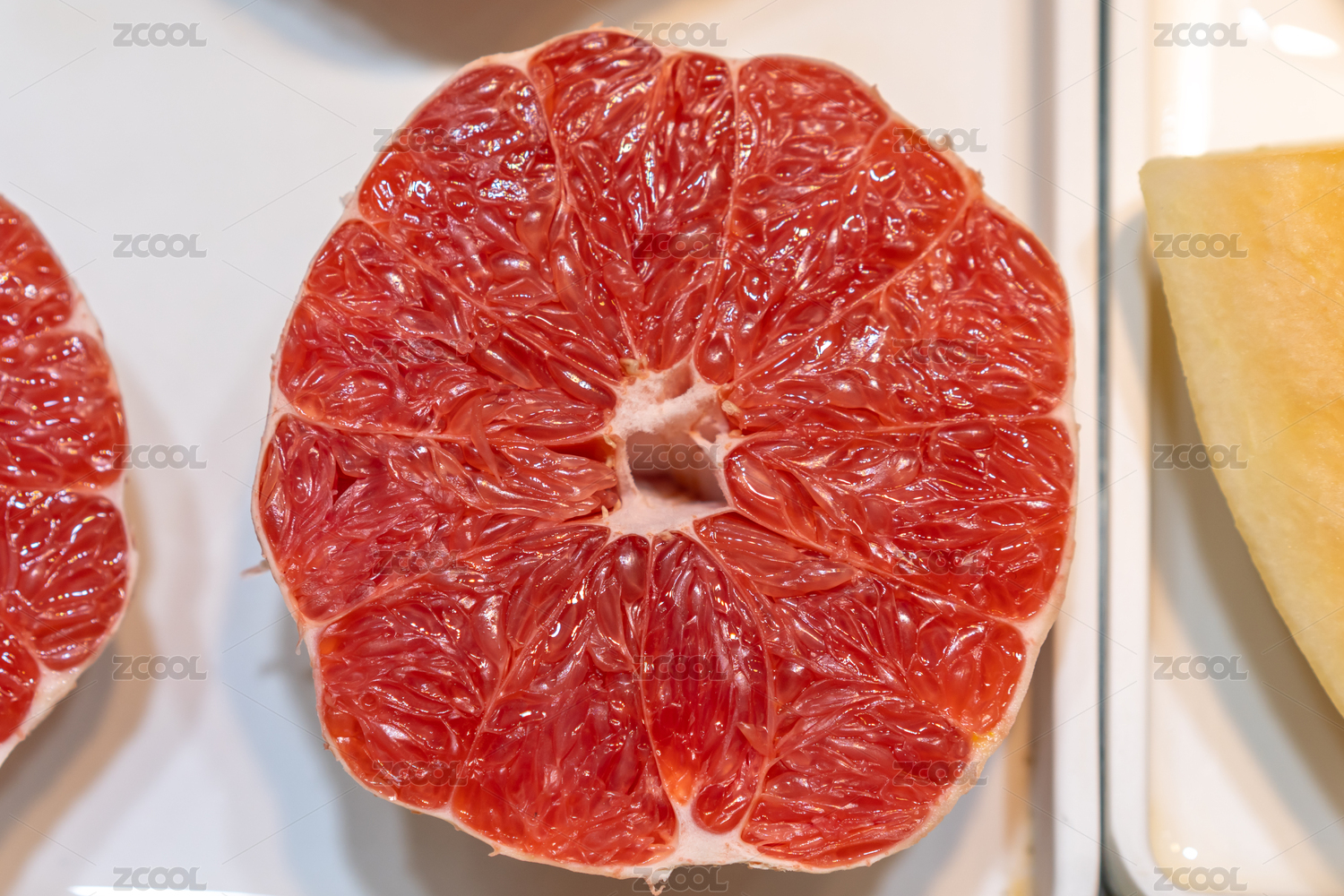 新鮮切片的粉紅葡萄柚特寫,展示多汁的部分