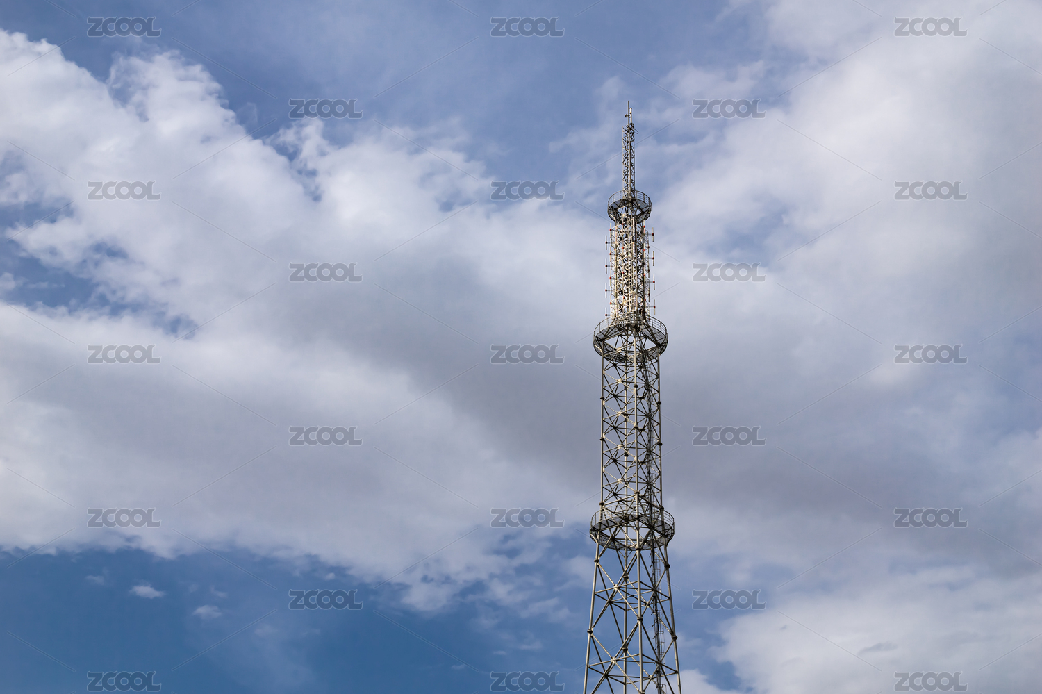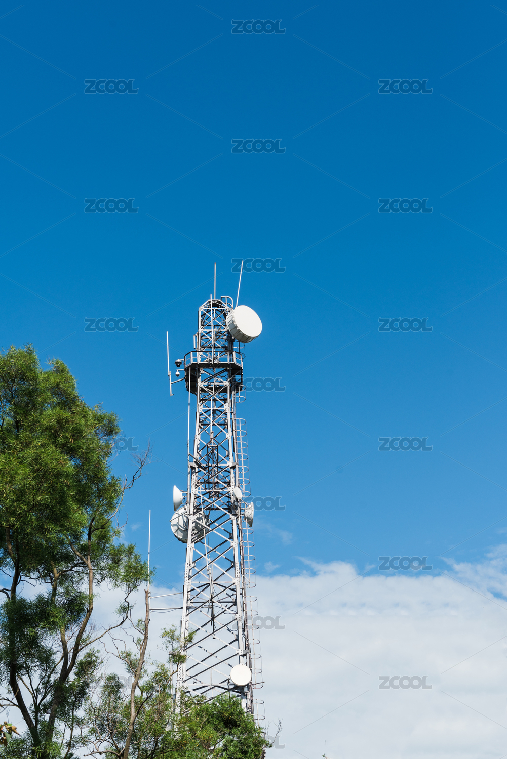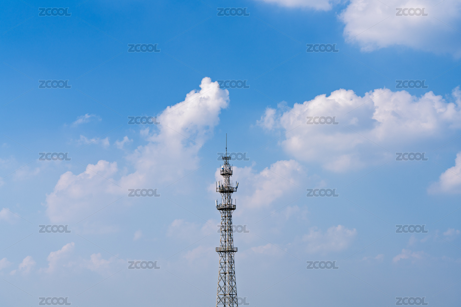 藍天白云背景下的信號發(fā)射塔
