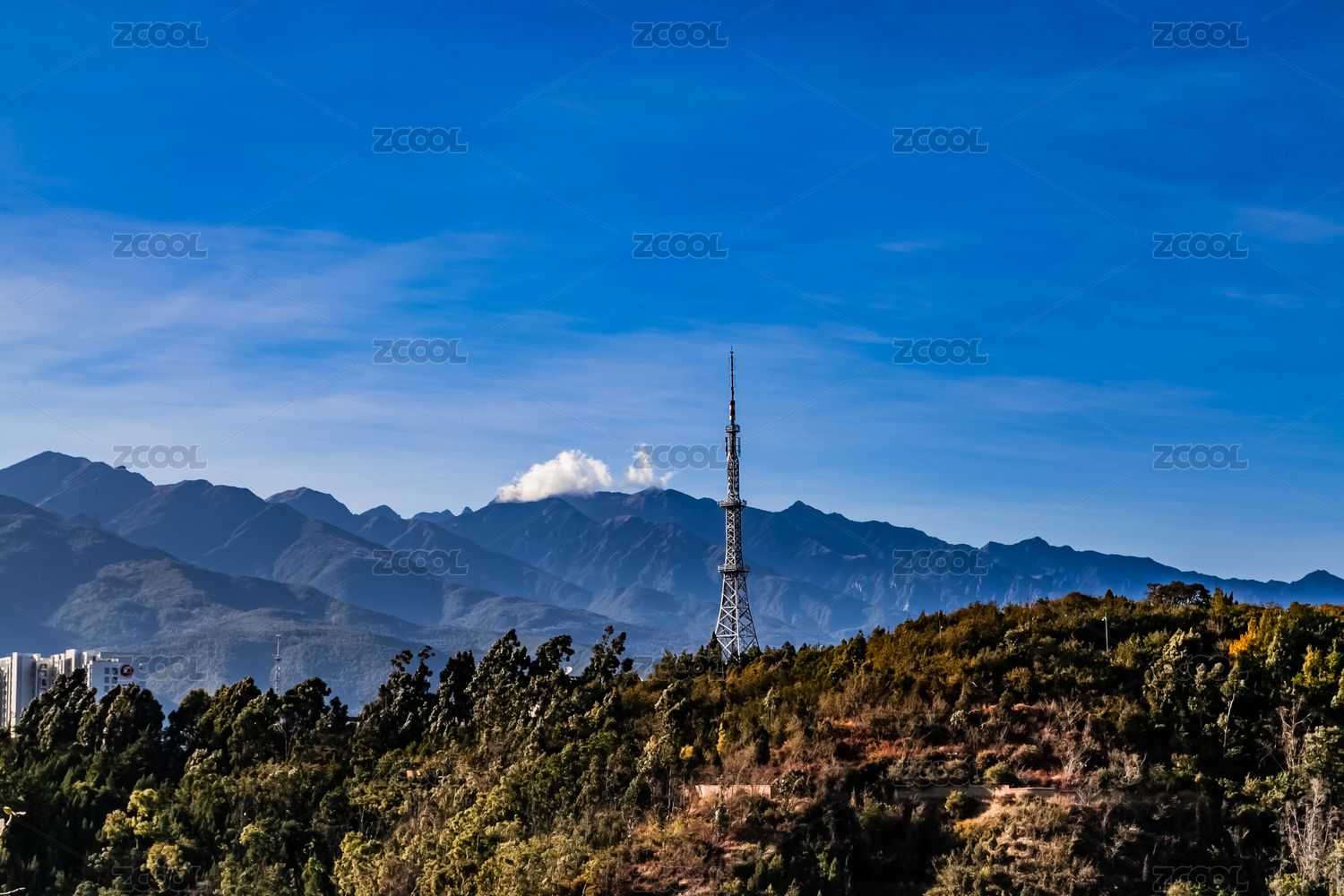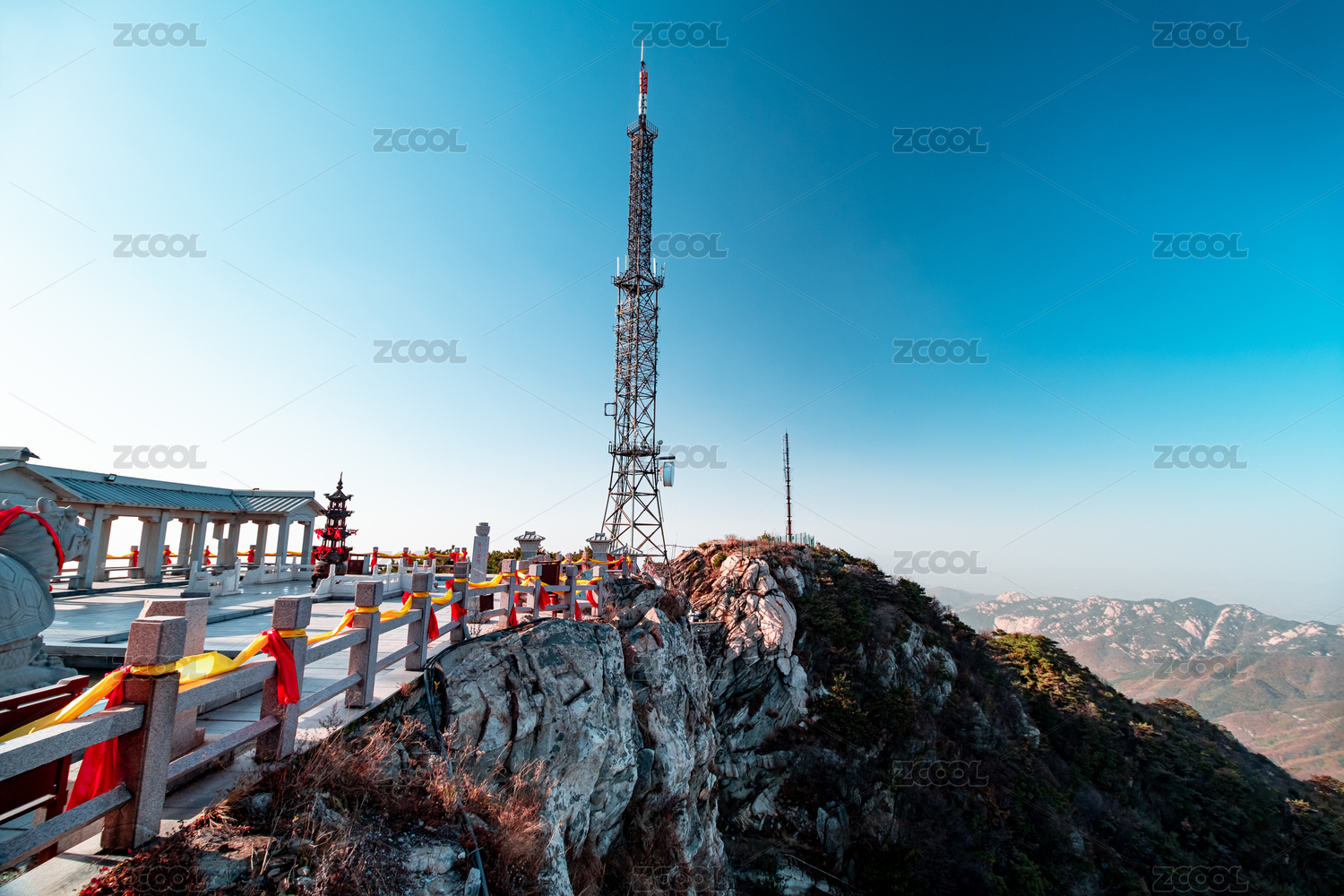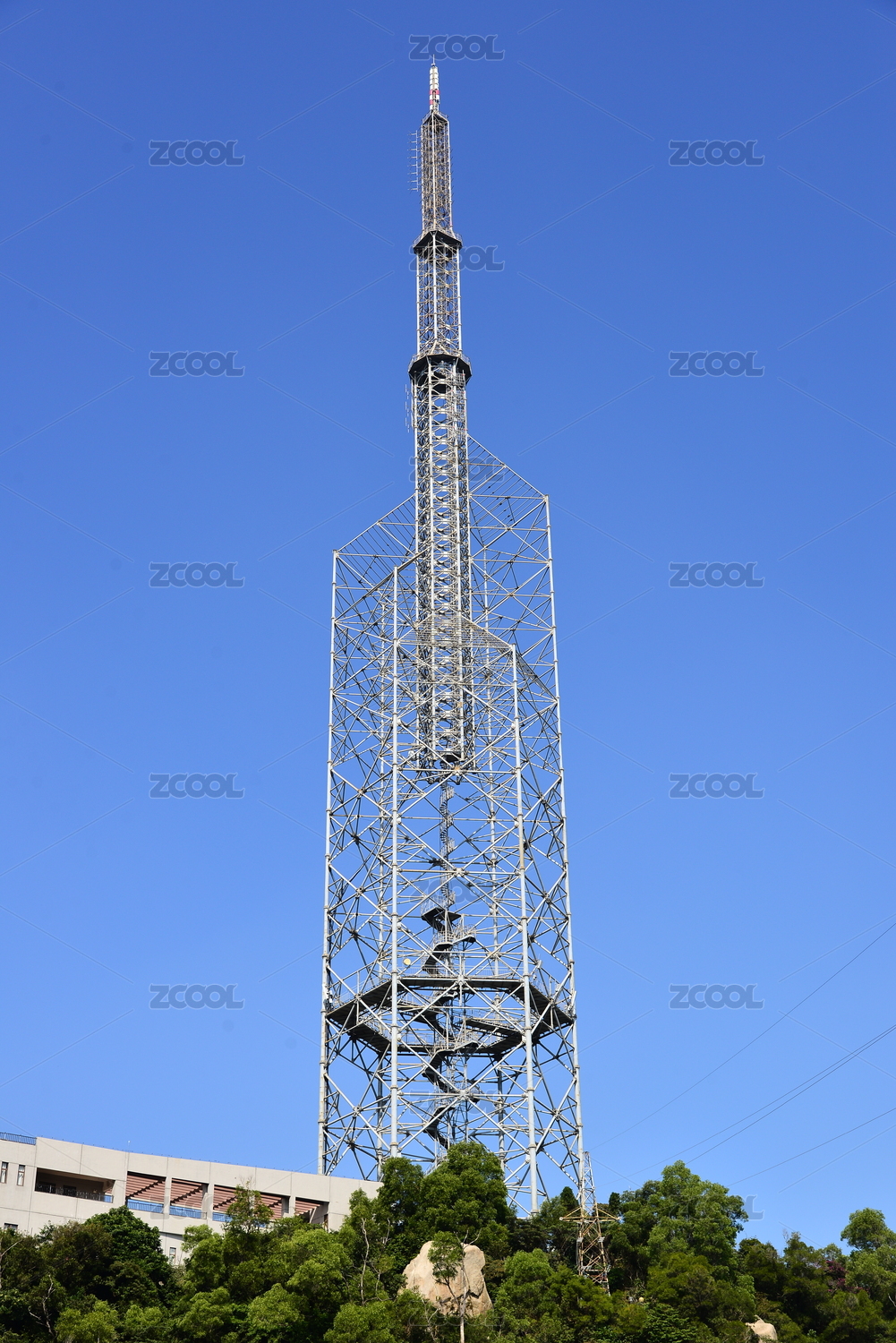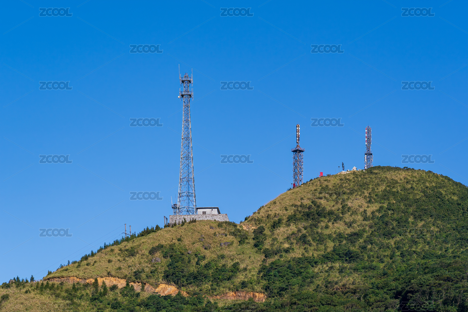 山頂上的信號發(fā)射塔白天景觀