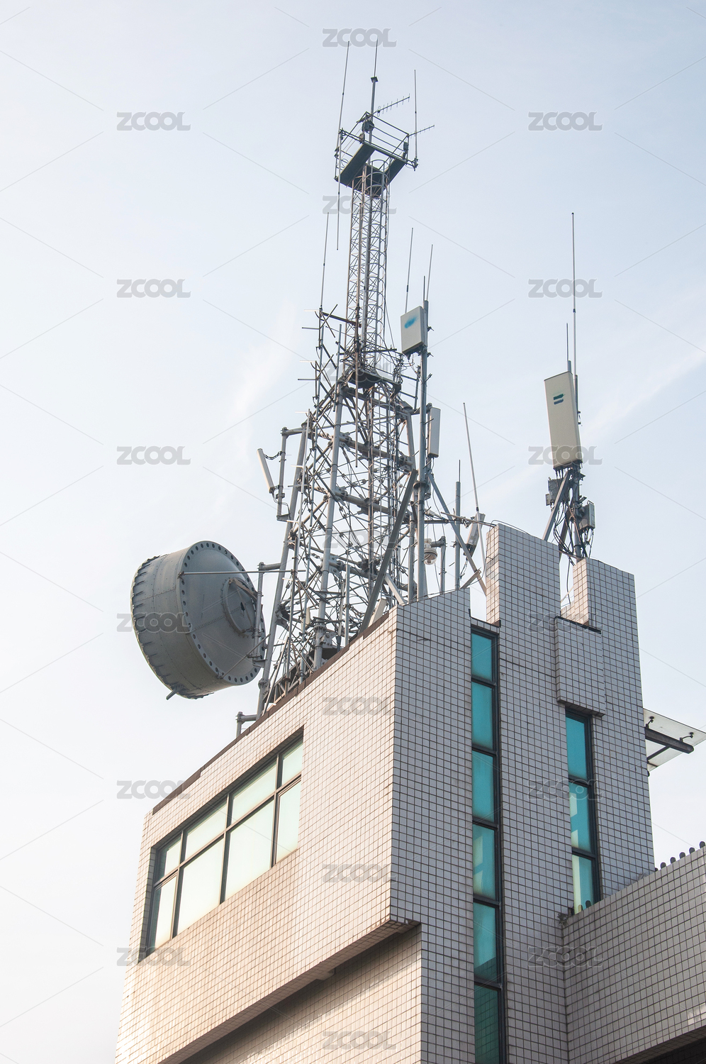 建筑物頂部的電視臺信號發(fā)射塔