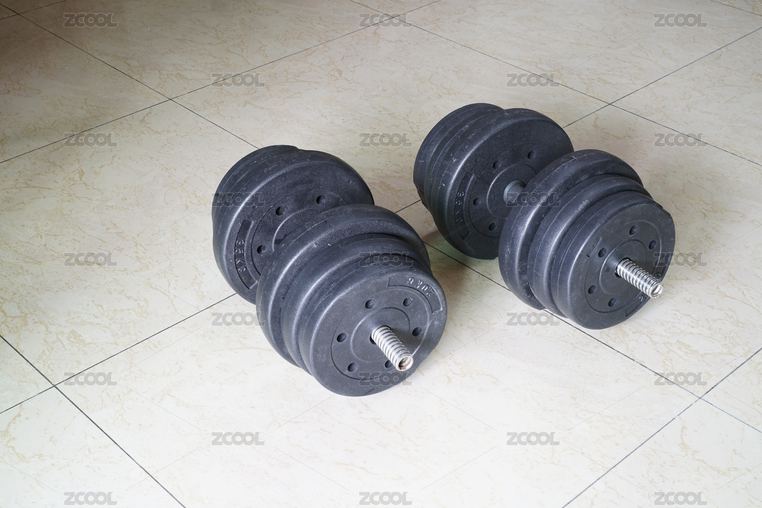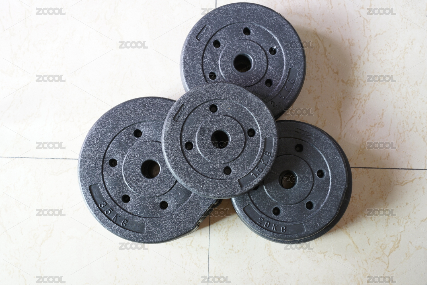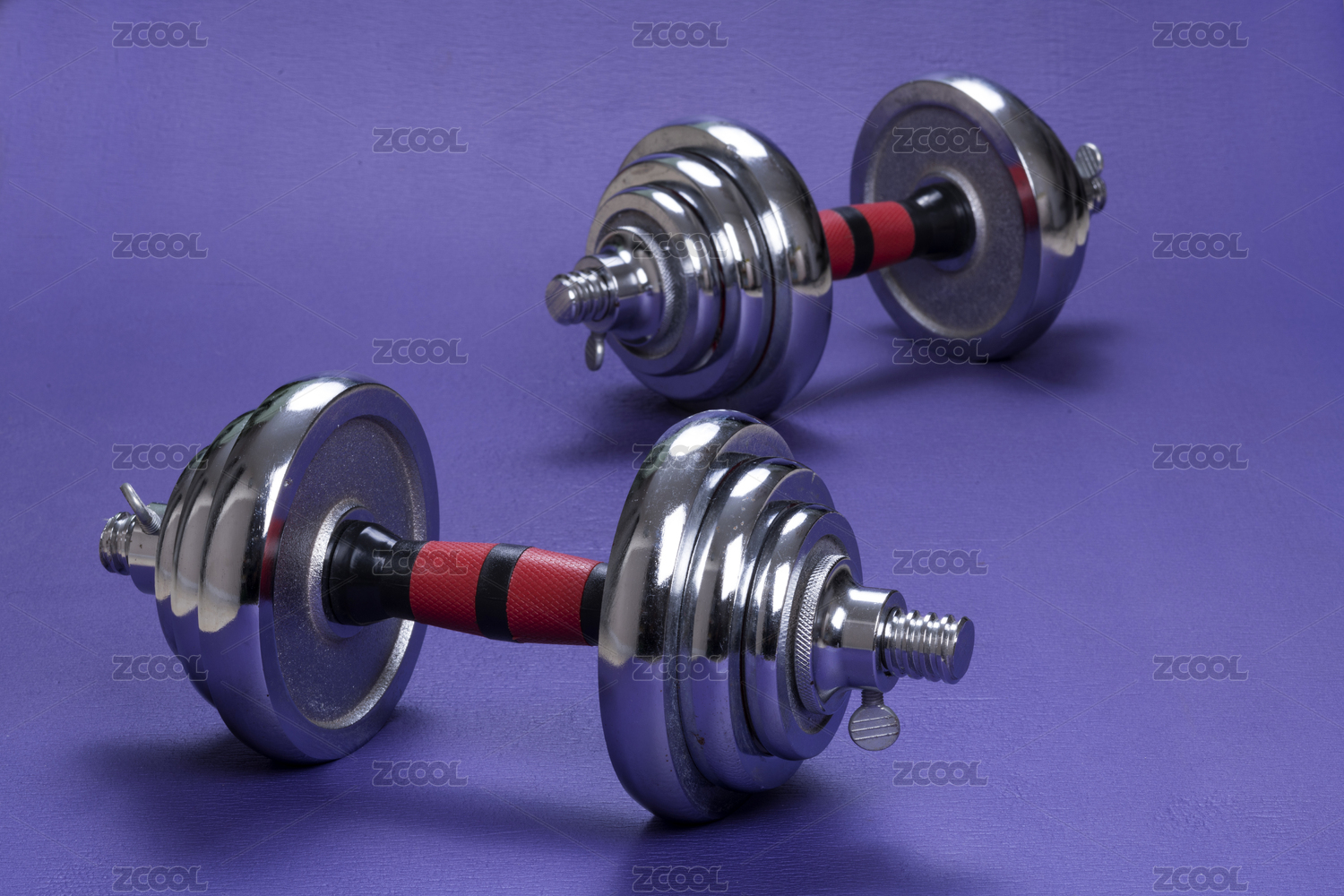 兩種不同重量的啞鈴,疊放在白色的背景上
