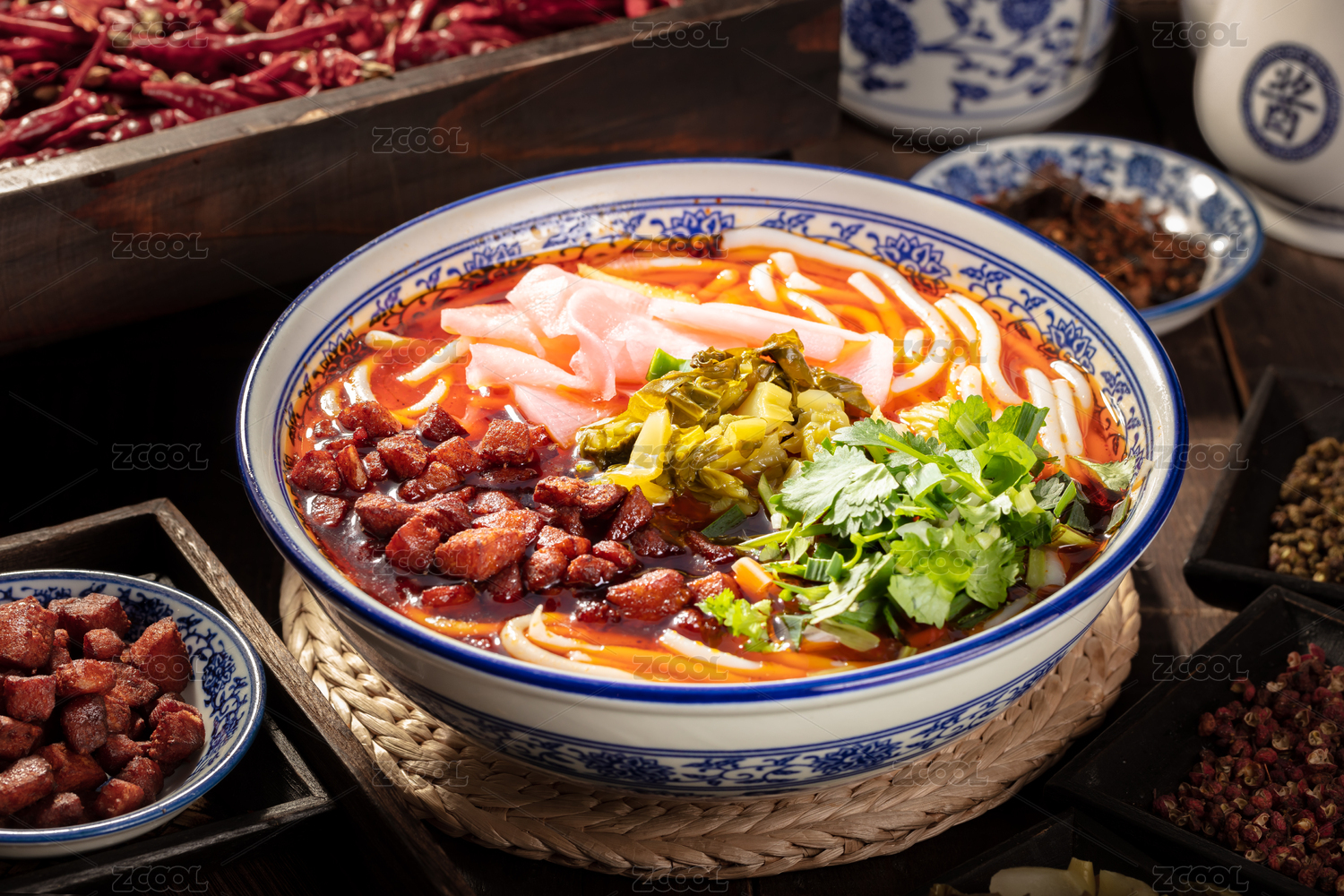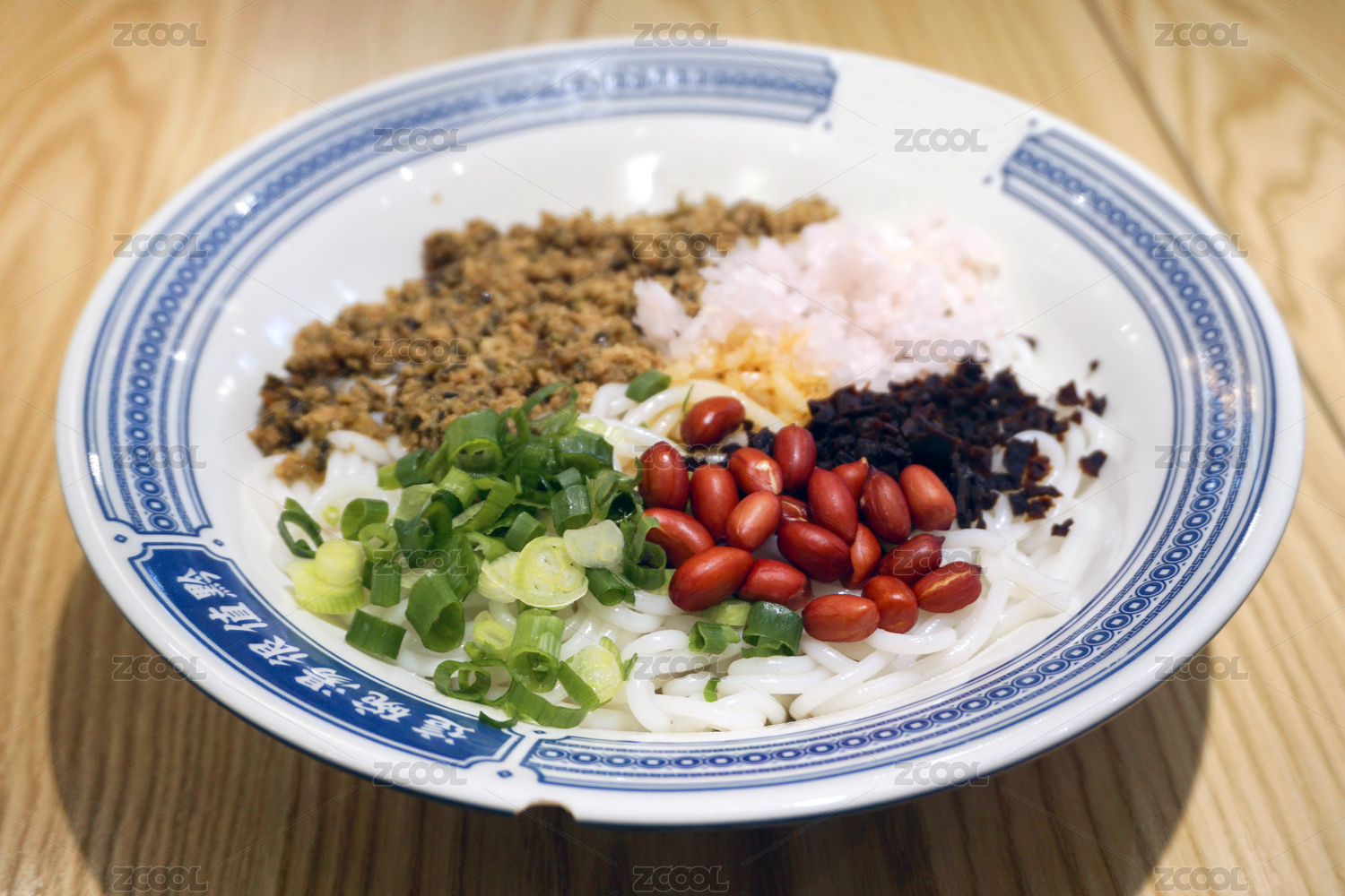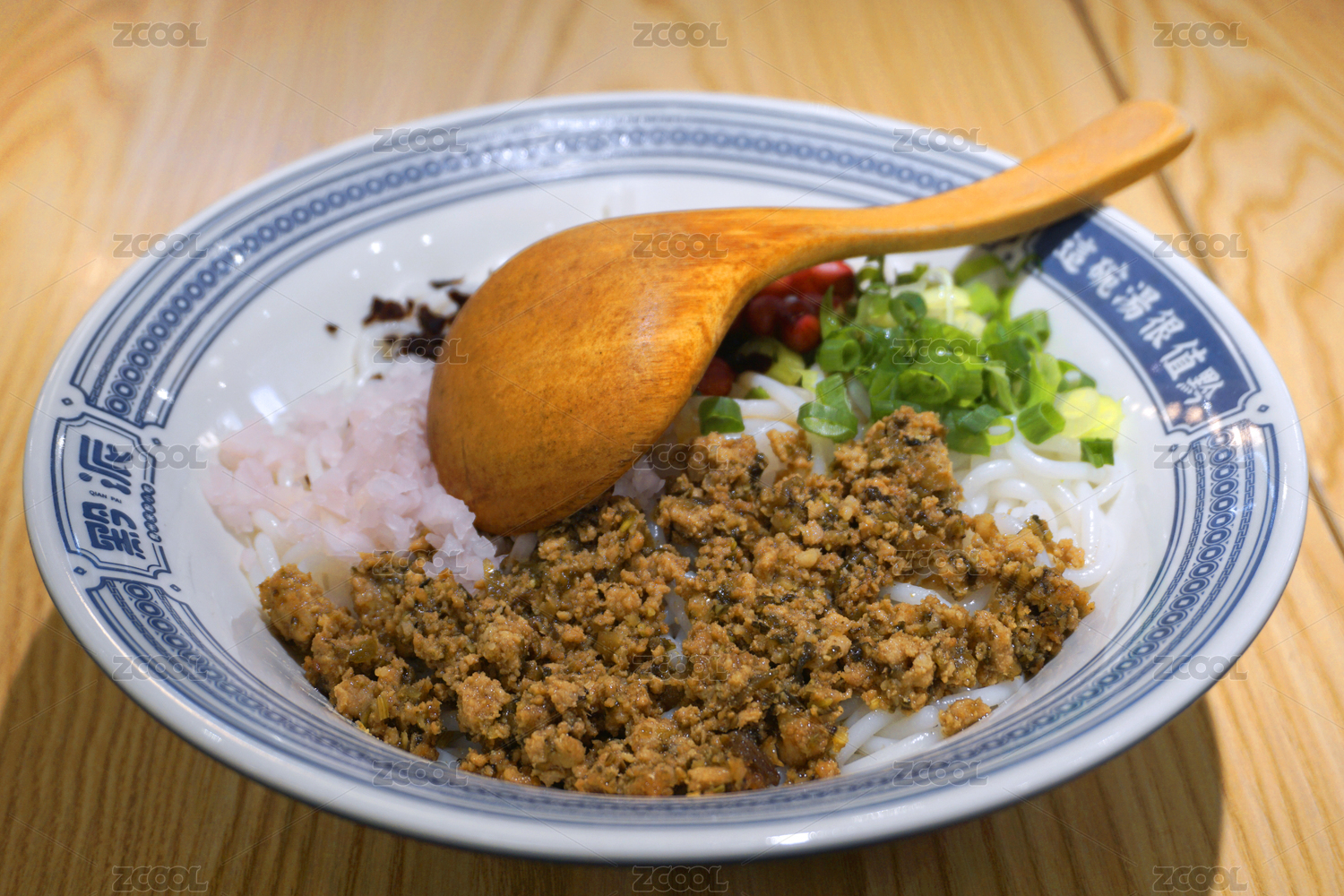 青花瓷大碗里的干臊子羊肉米粉