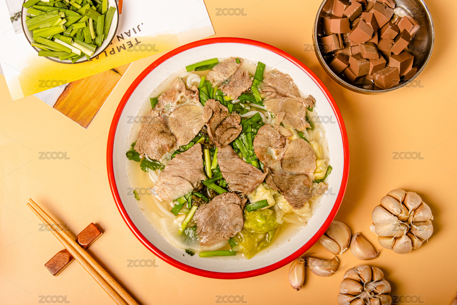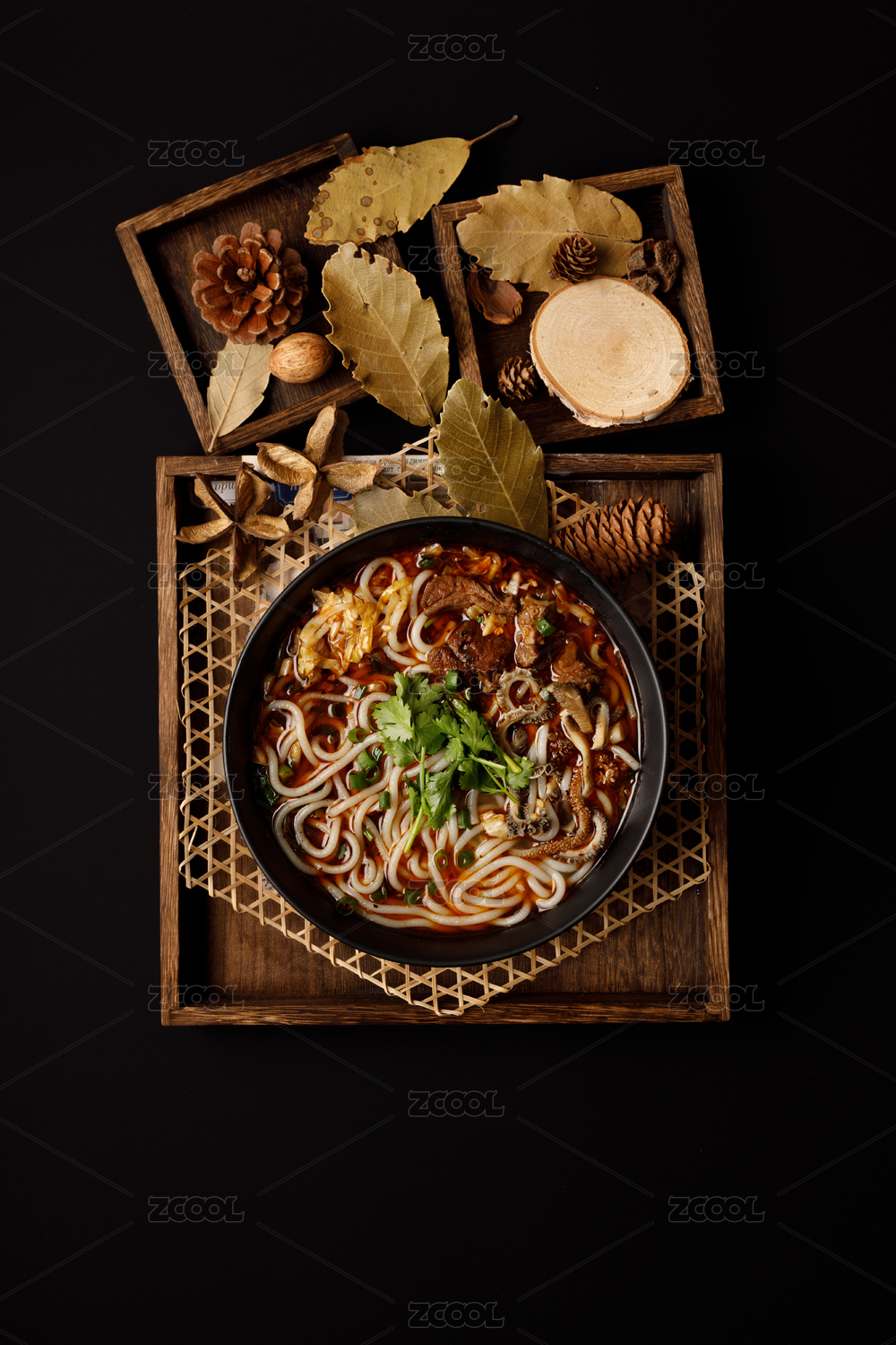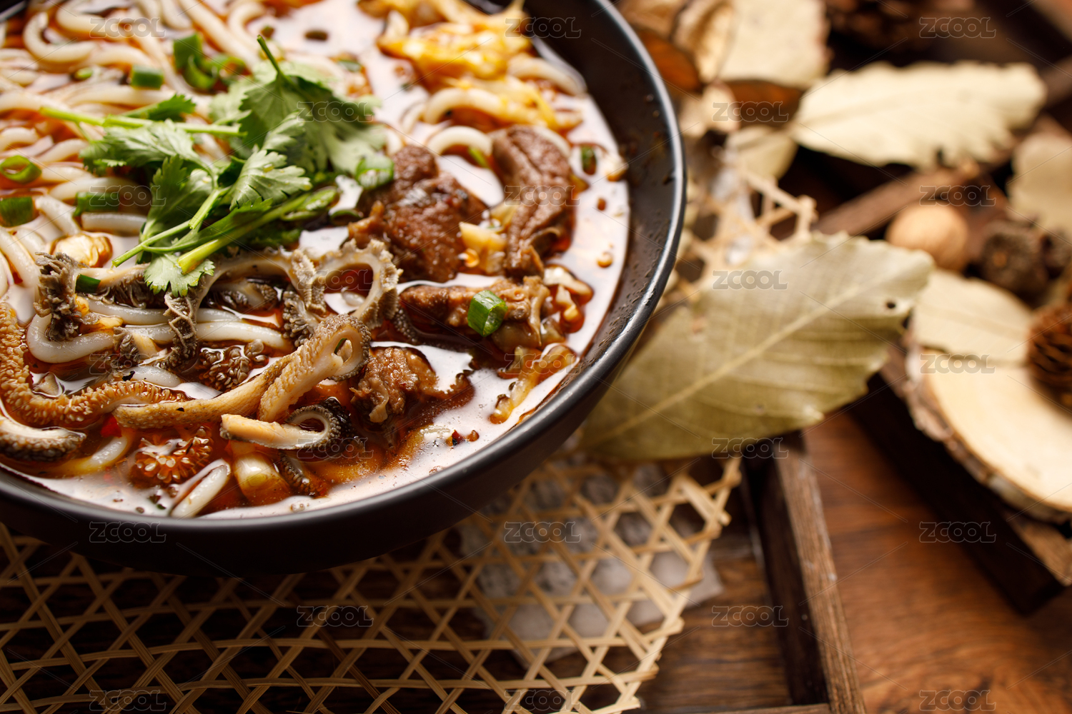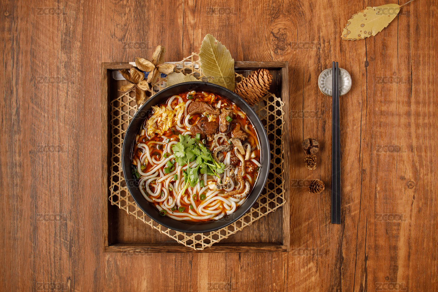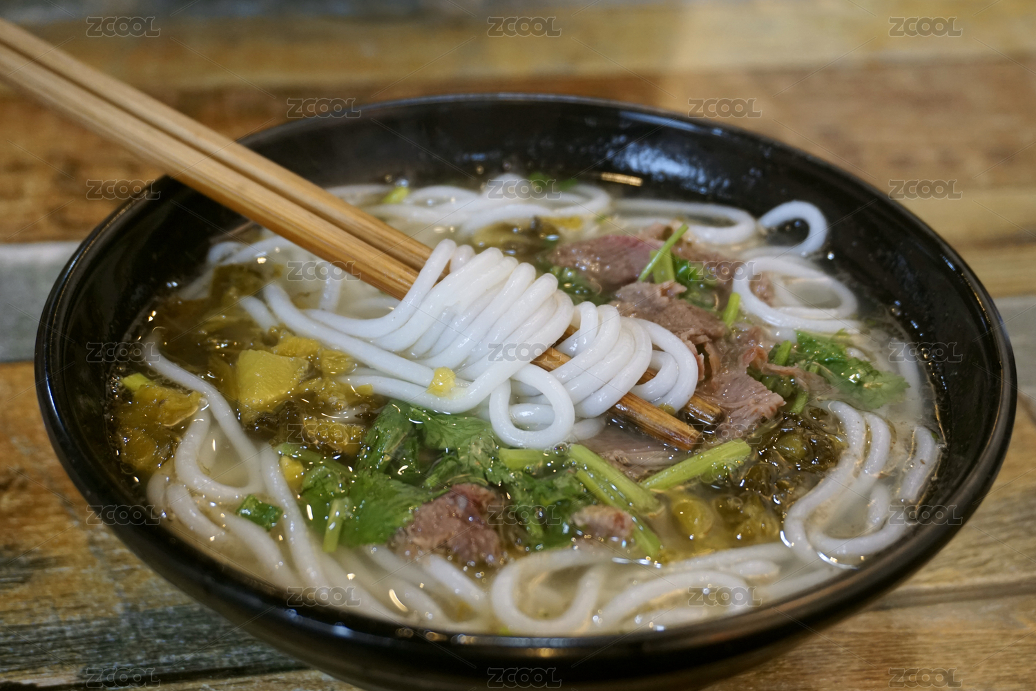 木質(zhì)背景木質(zhì)托盤上的一碗羊肉米粉