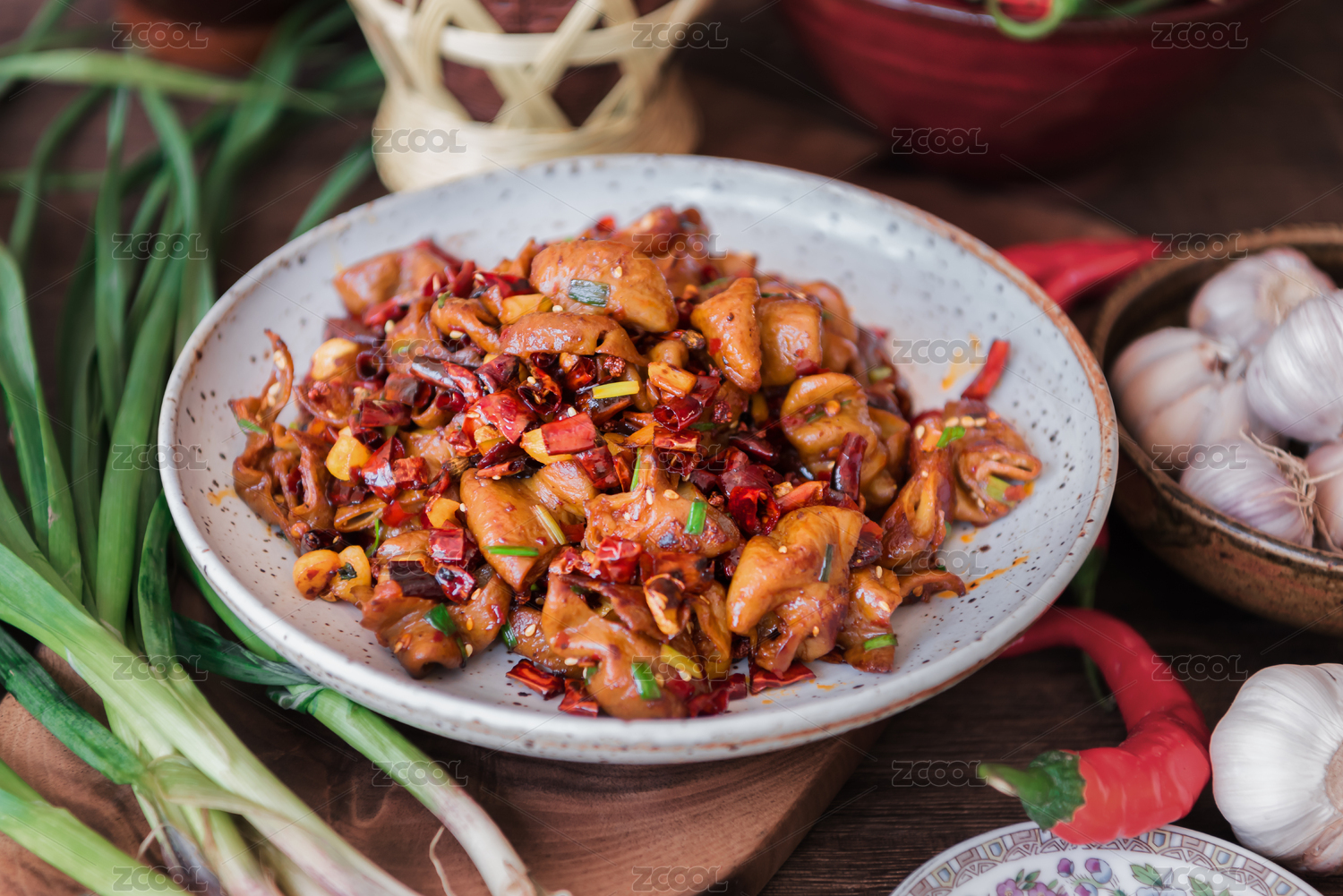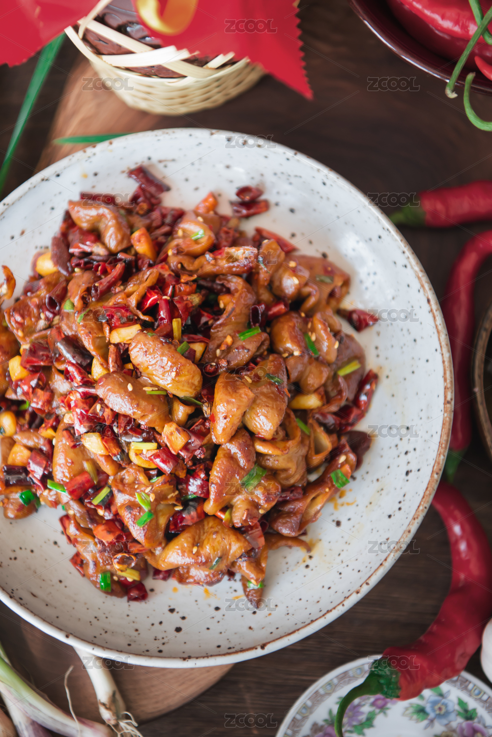 盤子里的江湖菜爆炒肥腸辣子肥腸鮮椒肥腸
