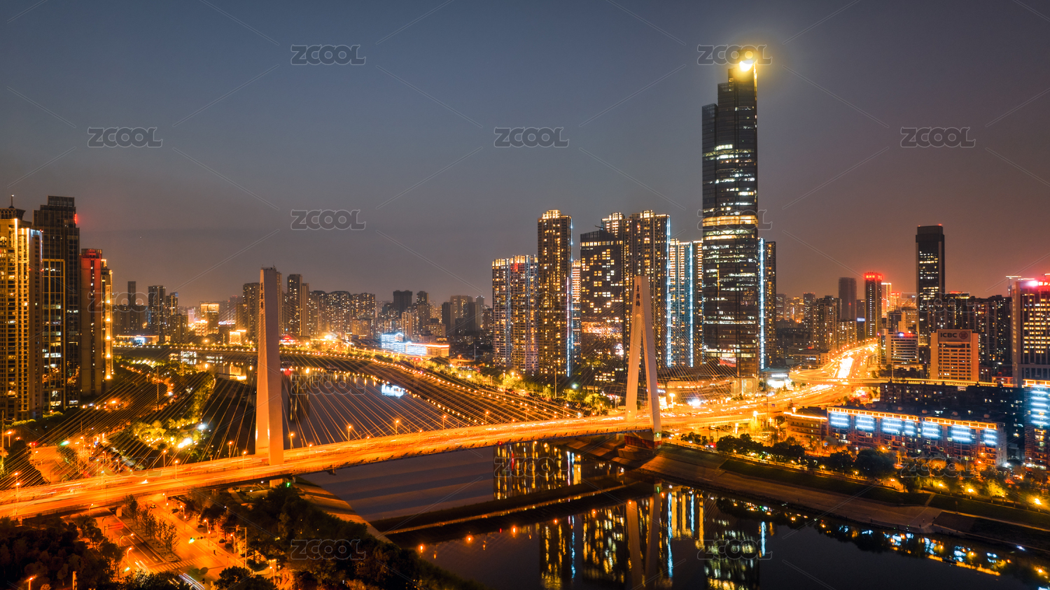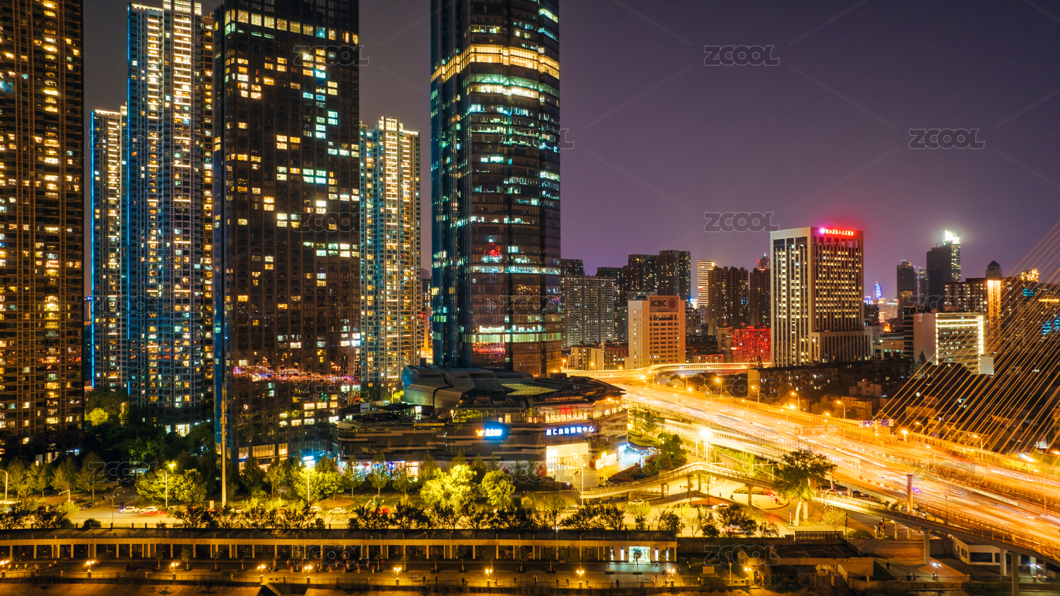 武漢市月湖橋越秀城市夜景