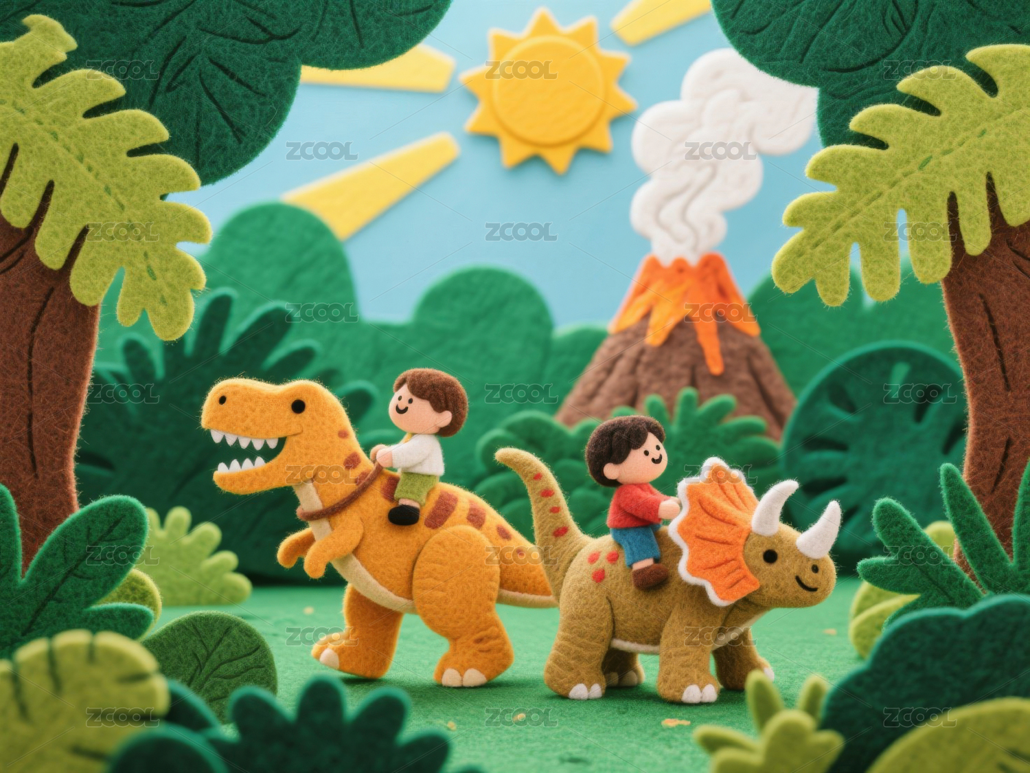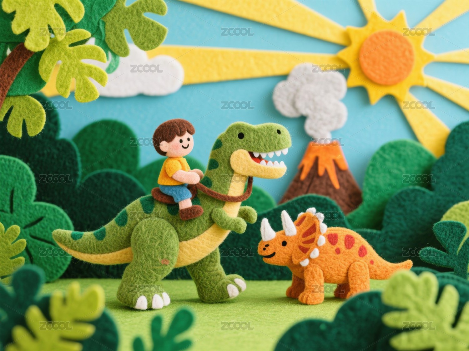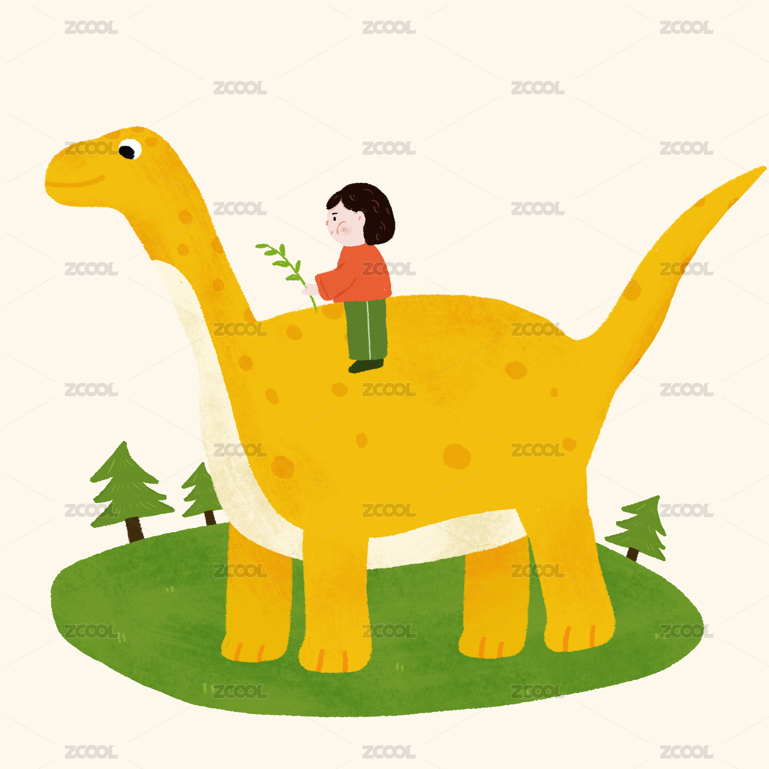 兒童騎在恐龍身上扁平質(zhì)感插畫