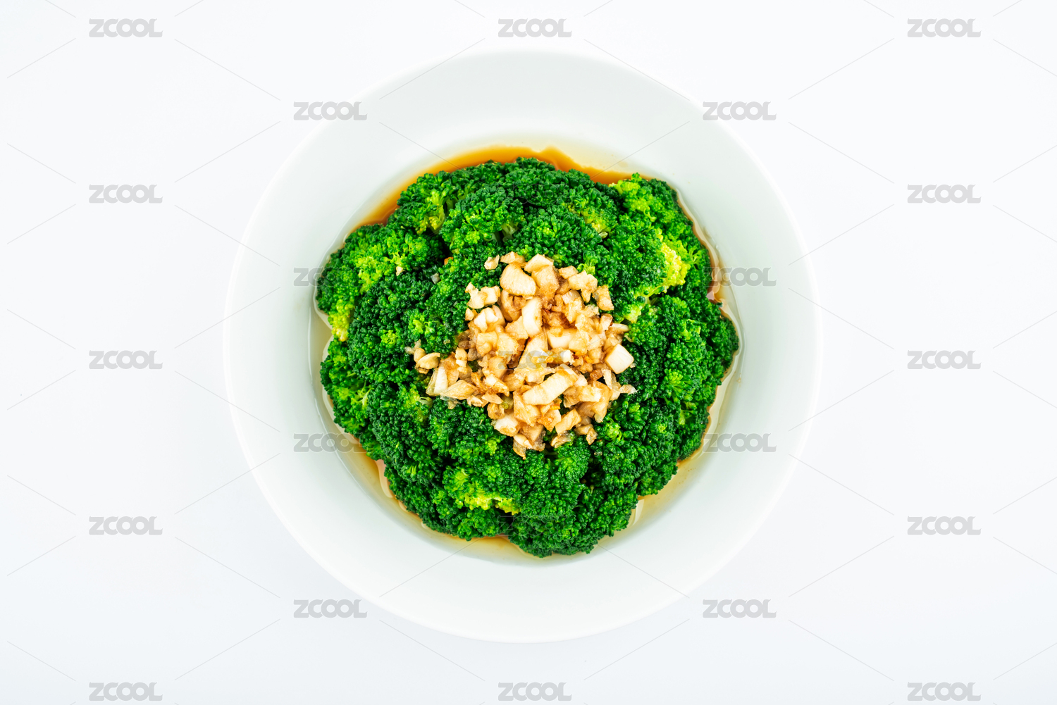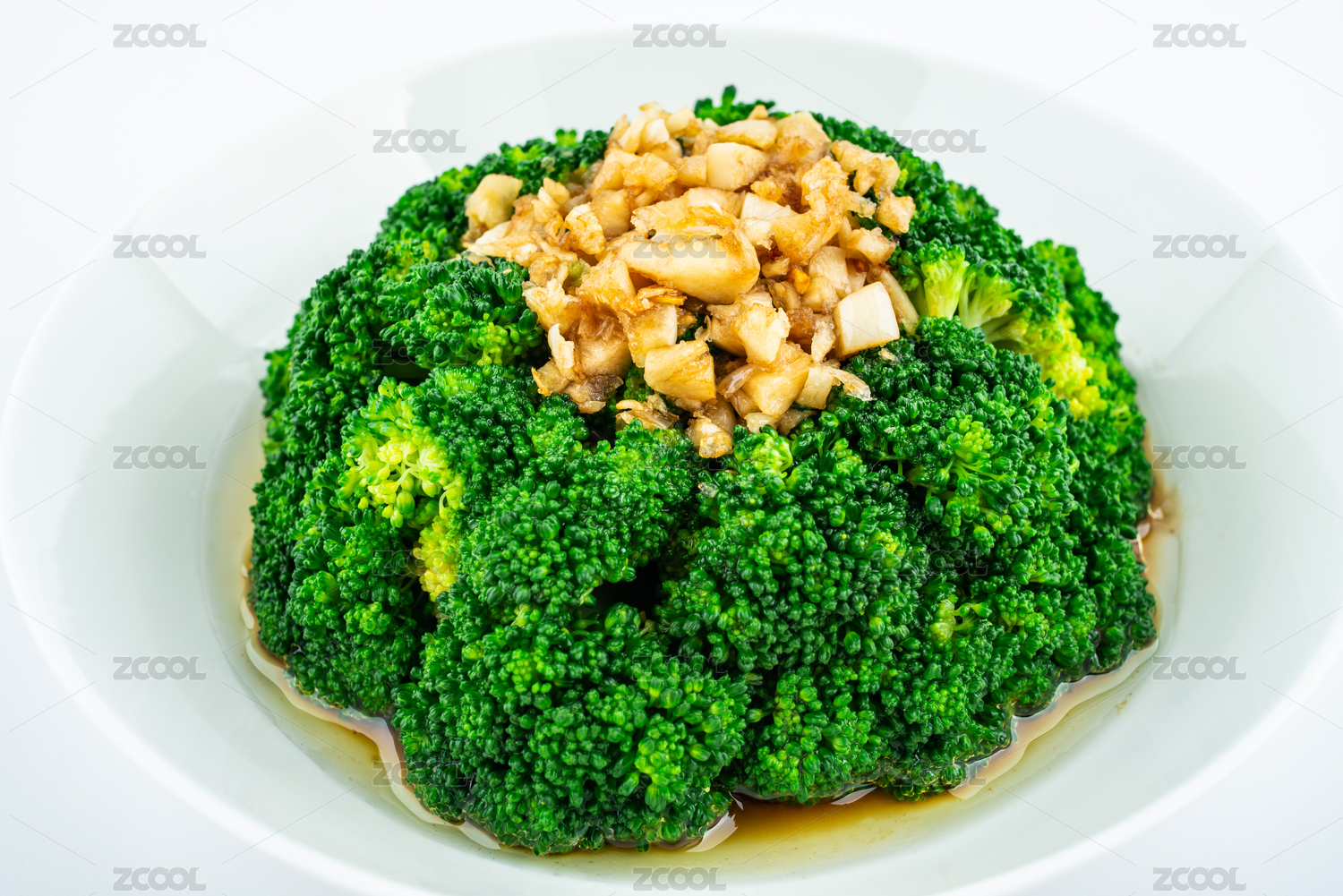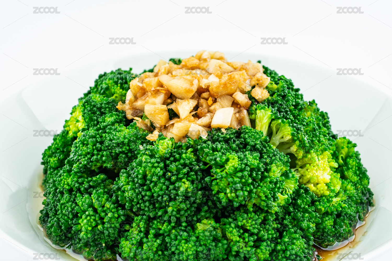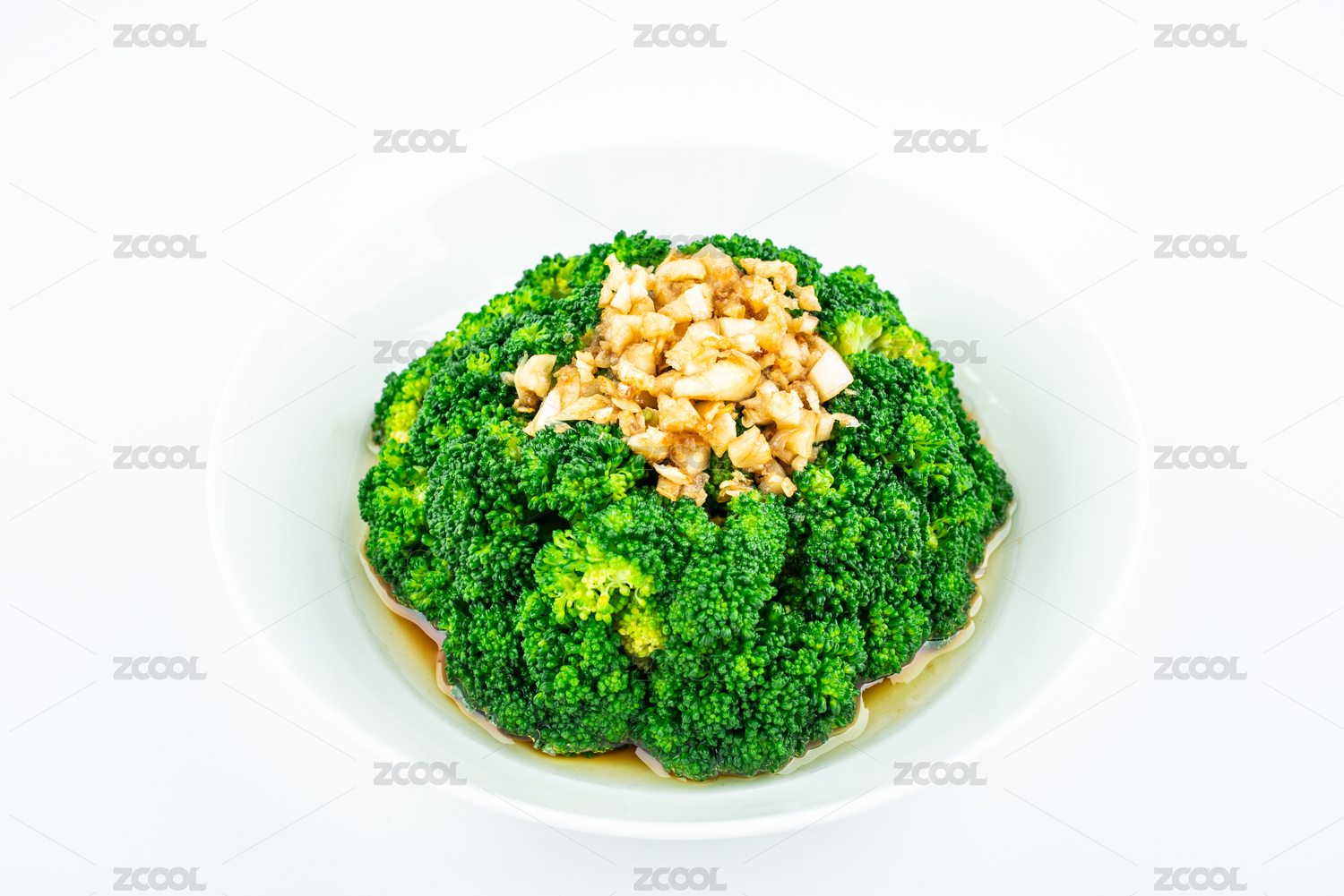 白背景上一碟蒜蓉西藍(lán)花菜