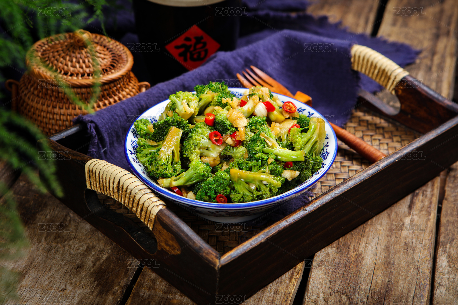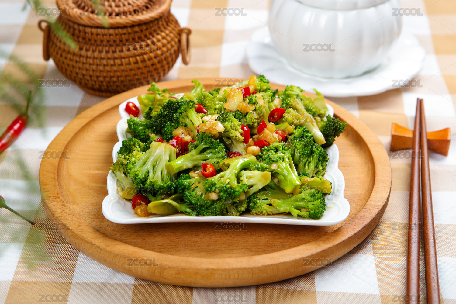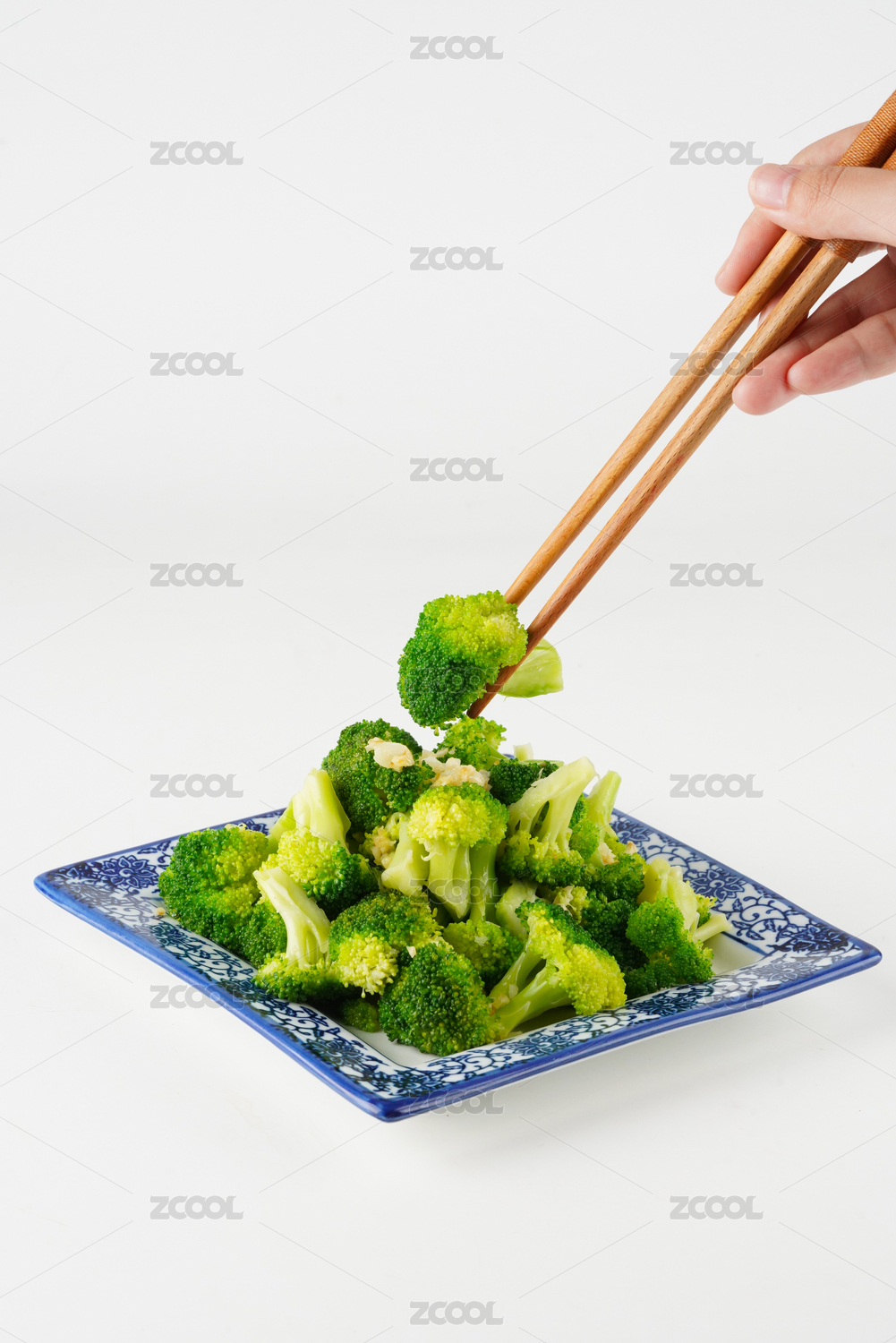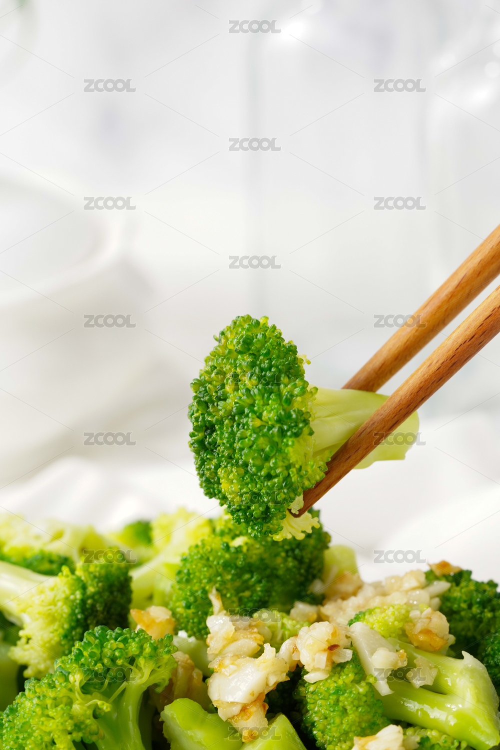 白背景上一碟蒜蓉西藍(lán)花菜