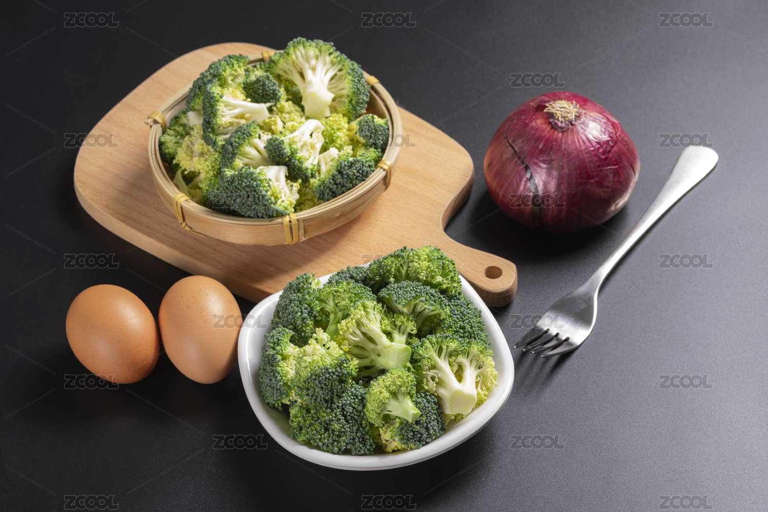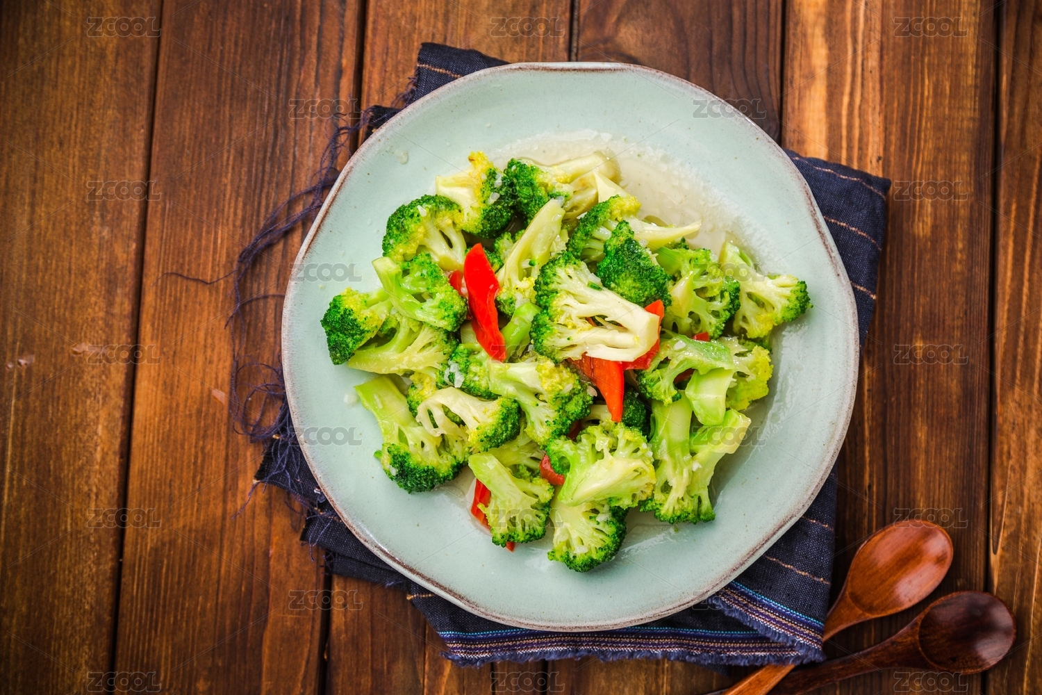 保健蔬菜西藍(lán)花盛放在盤子中擺放在桌面上