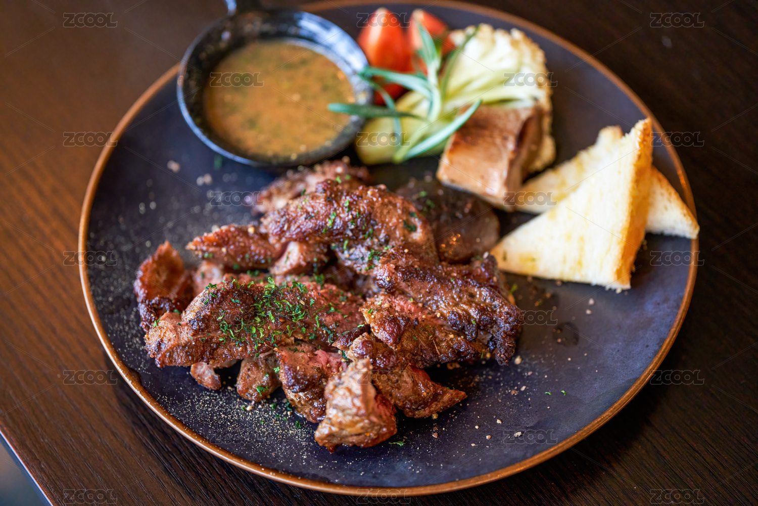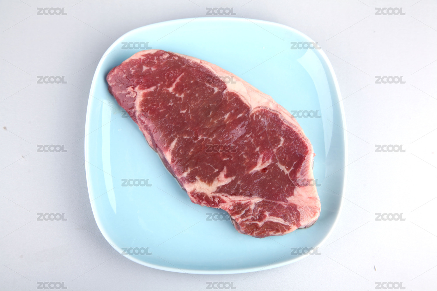 藍(lán)色碟子上的西冷牛排