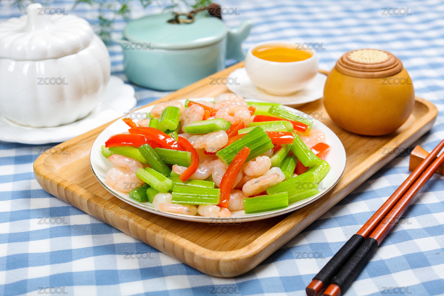 家常小炒菜肴紅辣椒西芹燴蝦仁
