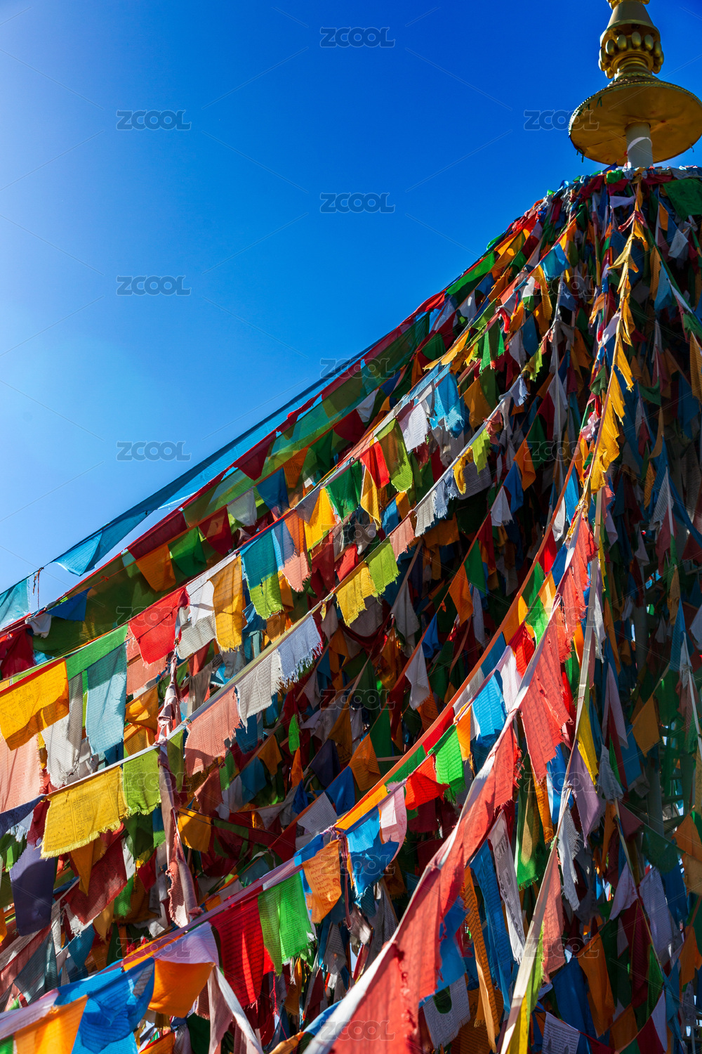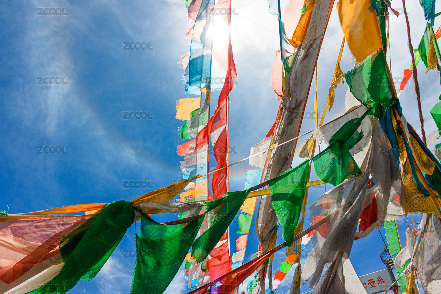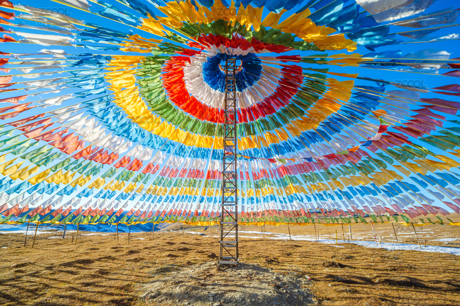 五彩經(jīng)幡飄揚(yáng)藍(lán)天之下