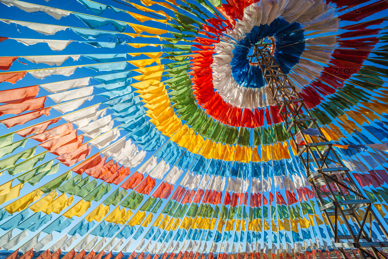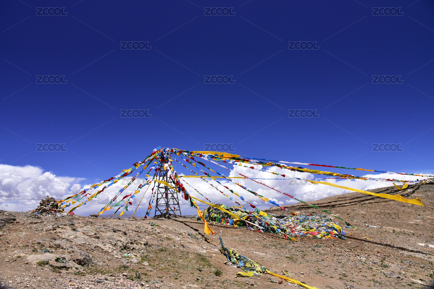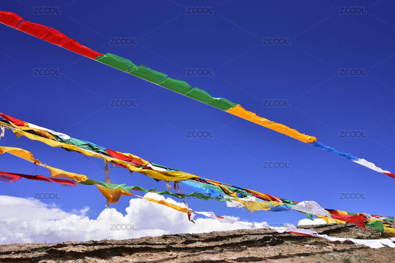五彩經(jīng)幡飄揚(yáng)藍(lán)天之下