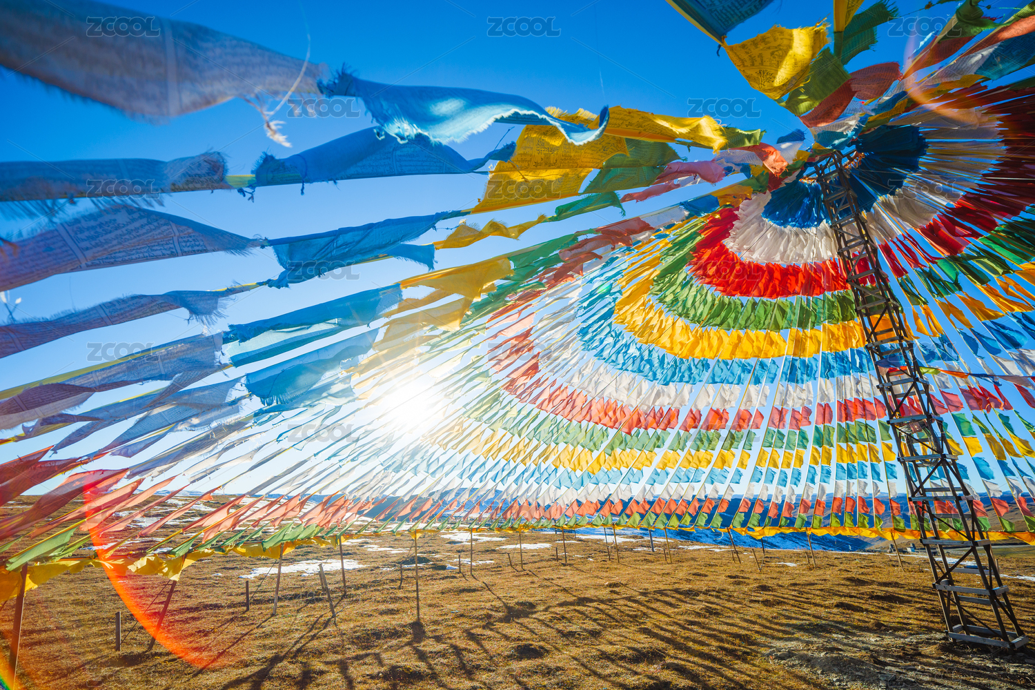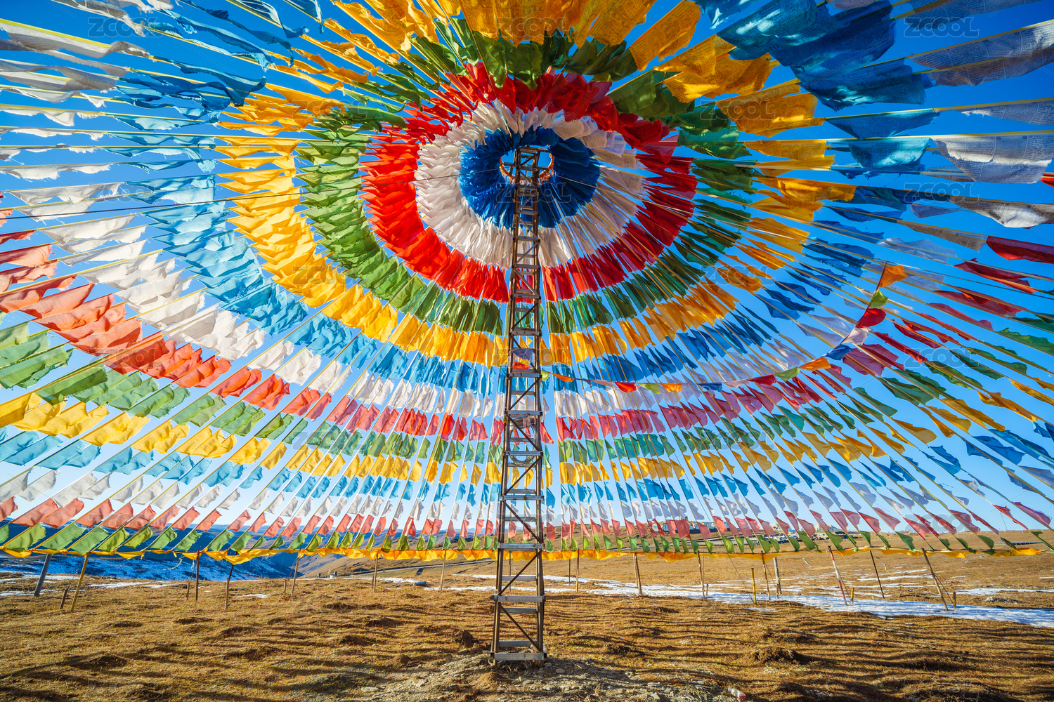 中國(guó)四川川西甘孜州藏區(qū)的五彩經(jīng)幡