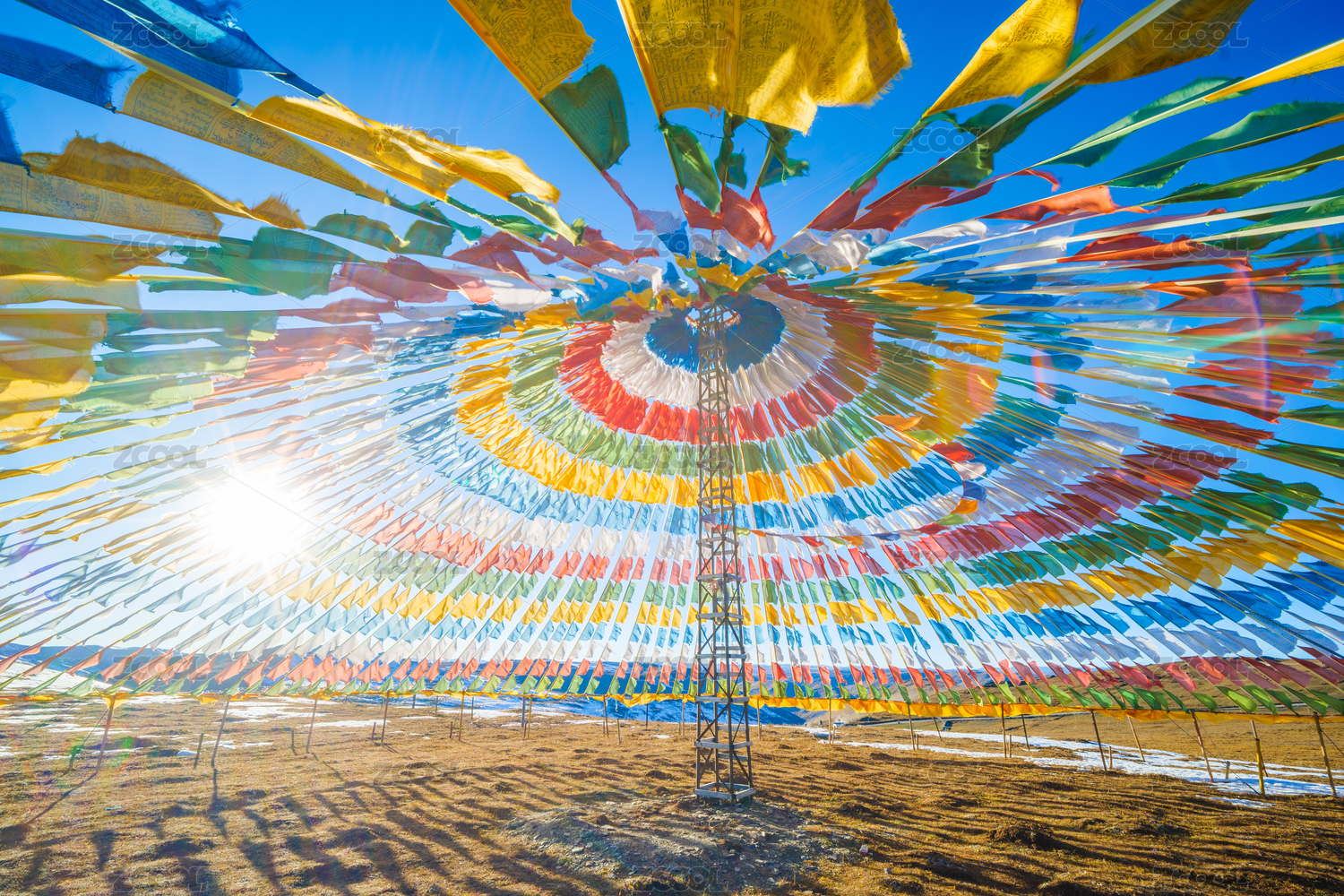 中國(guó)西藏山南五彩經(jīng)幡日暈